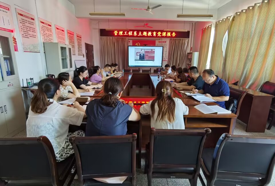 為深入開展學習貫徹習近平新時代中國特色社會主義思想主題教育,7月5日下午,管理系黨總支書記汪思曼為管理系全體黨員作《按照主題教育總要求,扎實做好管理系各項工作》的專題黨課報告。