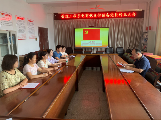 2024年6月21日,管理工程系電商教研室黨支部在系會議室召開石宇杰同志預備黨員轉正大會。大會由支部書記趙明主持,支部全體黨員參會。
