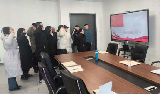 在莊嚴(yán)的黨旗下,范雨潔、蔡玉潔、劉春陽(yáng)三位預(yù)備黨員同志緊握右拳,面向黨旗鄭重宣誓,表達(dá)了為共產(chǎn)主義事業(yè)奮斗終身的決心和信念。范雨潔同志作為新黨員代表發(fā)言,她表示將牢記入黨誓詞,在今后的學(xué)習(xí)工作中,用更加嚴(yán)格的標(biāo)準(zhǔn)要求自己,不斷強(qiáng)化理論學(xué)習(xí),加強(qiáng)黨性修養(yǎng),努力進(jìn)入到為人民服務(wù)的隊(duì)伍中。陶琪在宣誓儀式上強(qiáng)調(diào)了黨員的責(zé)任與使命,勉勵(lì)新黨員要時(shí)刻銘記入黨誓詞,踐行黨的宗旨,發(fā)揮先鋒模范作用。