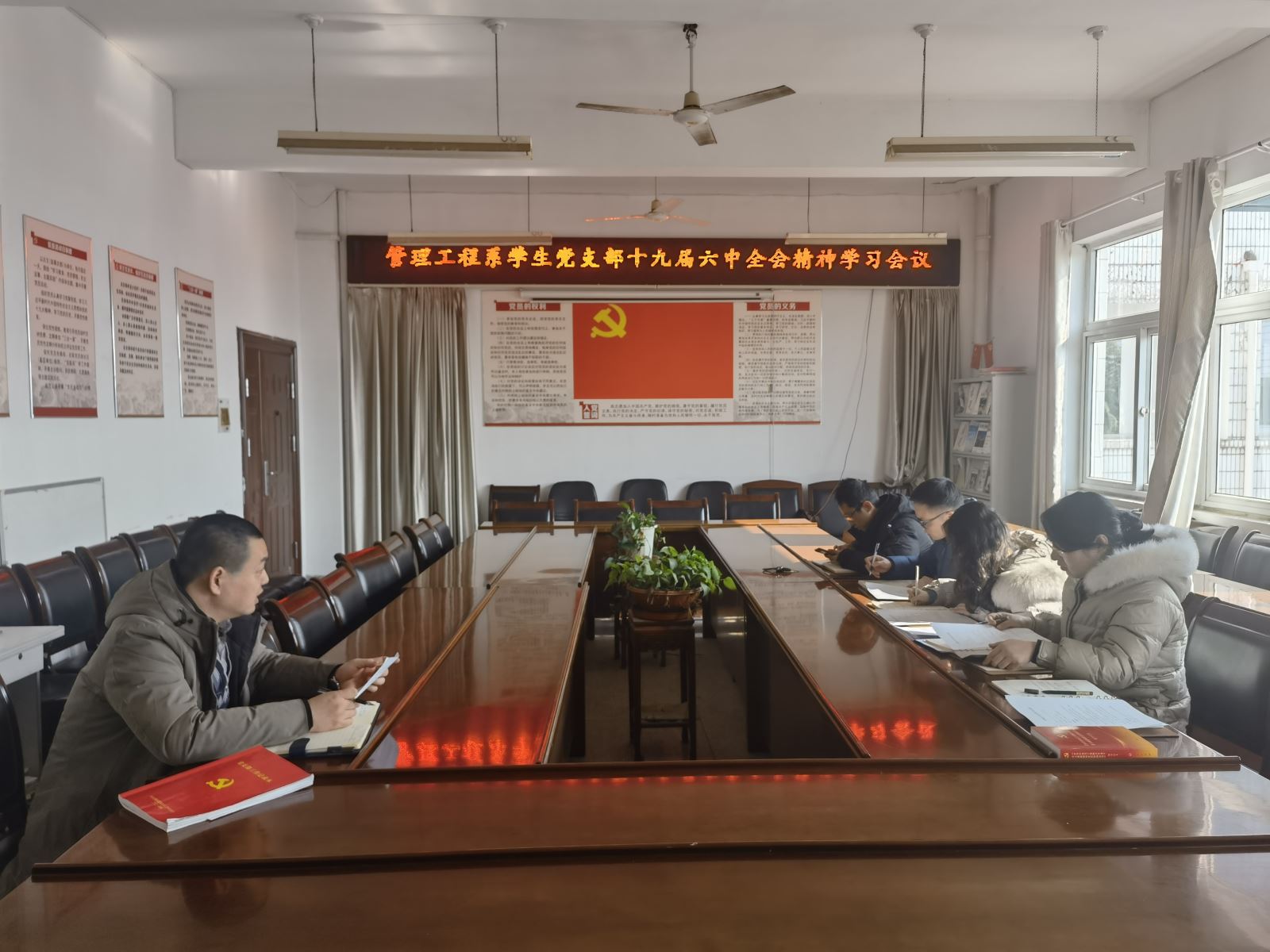 為深入學習貫徹黨的十九屆六中全會精神,管理系學生黨支部于1月3日召開學習會議。會議由系總支副書記陶琪主持,學生支部全體黨員參會。