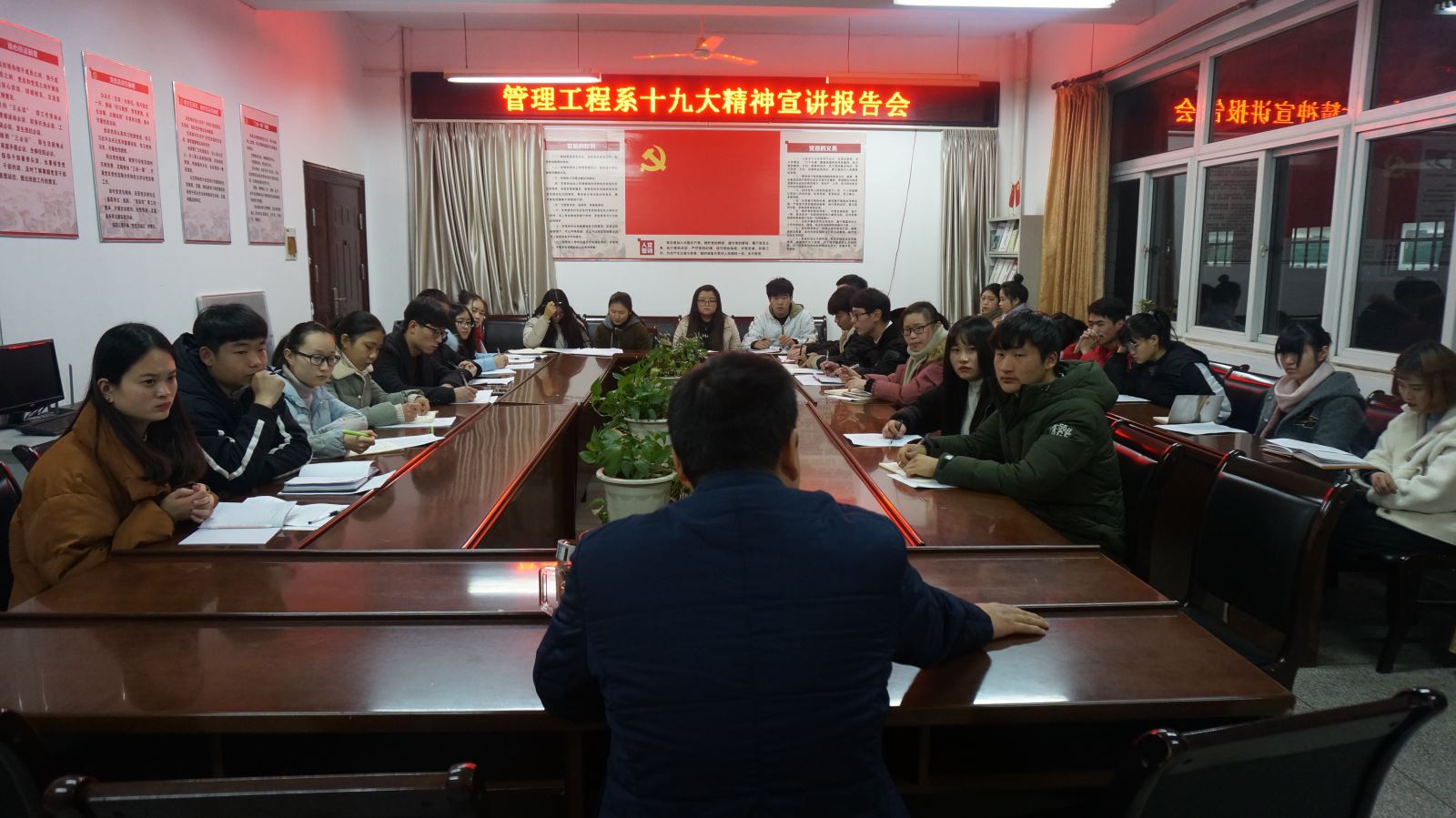 12月21日晚7時,我系黨的十九大精神學習小組成員在系會議室進行第四次集中學習。管理系副主任岳朝暉擔任主講。