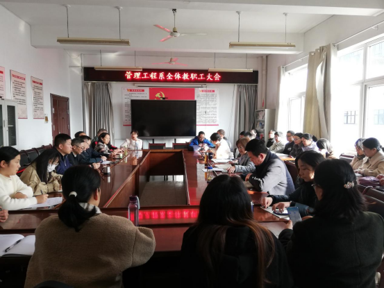 為進(jìn)一步做好安全生產(chǎn)管理、招生及畢業(yè)實習(xí)等工作,11月15日下午,管理工程系在系會議室召開全體教職工大會,管理工程系黨總支書記汪思曼、主任岳朝暉、副書記陶琪、副主任吳金菊及全體教職人員參加會議,會議由汪思曼主持。