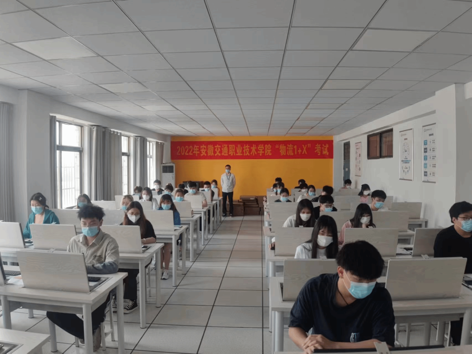 本次考試有2020級、2021級兩個(gè)年級物流管理和物流金融管理專業(yè)共73人參加。考試分為理論考試、綜合應(yīng)用和線下操作三個(gè)部分,其中理論考試和綜合應(yīng)用在北區(qū)機(jī)房進(jìn)行,實(shí)操考核在南區(qū)物流實(shí)訓(xùn)中心進(jìn)行。