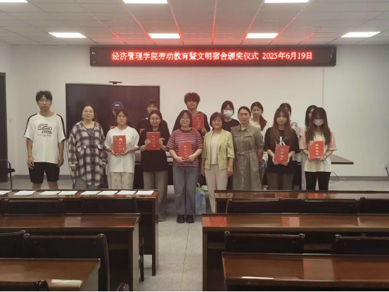 為深化勞動育人成效,推進宿舍文明建設,6月19日,經濟管理學院勞動教育暨文明宿舍頒獎儀式在學院會議室舉行,學院黨總支書記汪思曼出席活動。