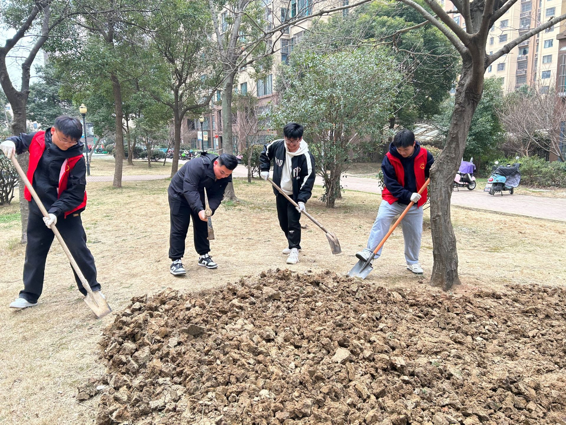 第三組志愿者們手拿鐵鍬、鐵鏟等工具對小區(qū)內綠化區(qū)域進行了全面清理和泥土翻新。為了綠植能夠得到更好的養(yǎng)護,志愿者們認真地挖坑翻土松土,配合默契、干勁十足。活動間隙,志愿者們還不忘提醒來往居民注意腳下、愛護綠植,提高綠色環(huán)保意識。