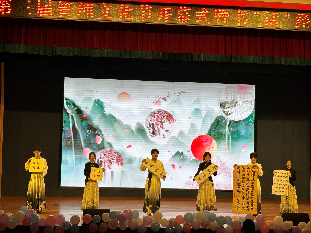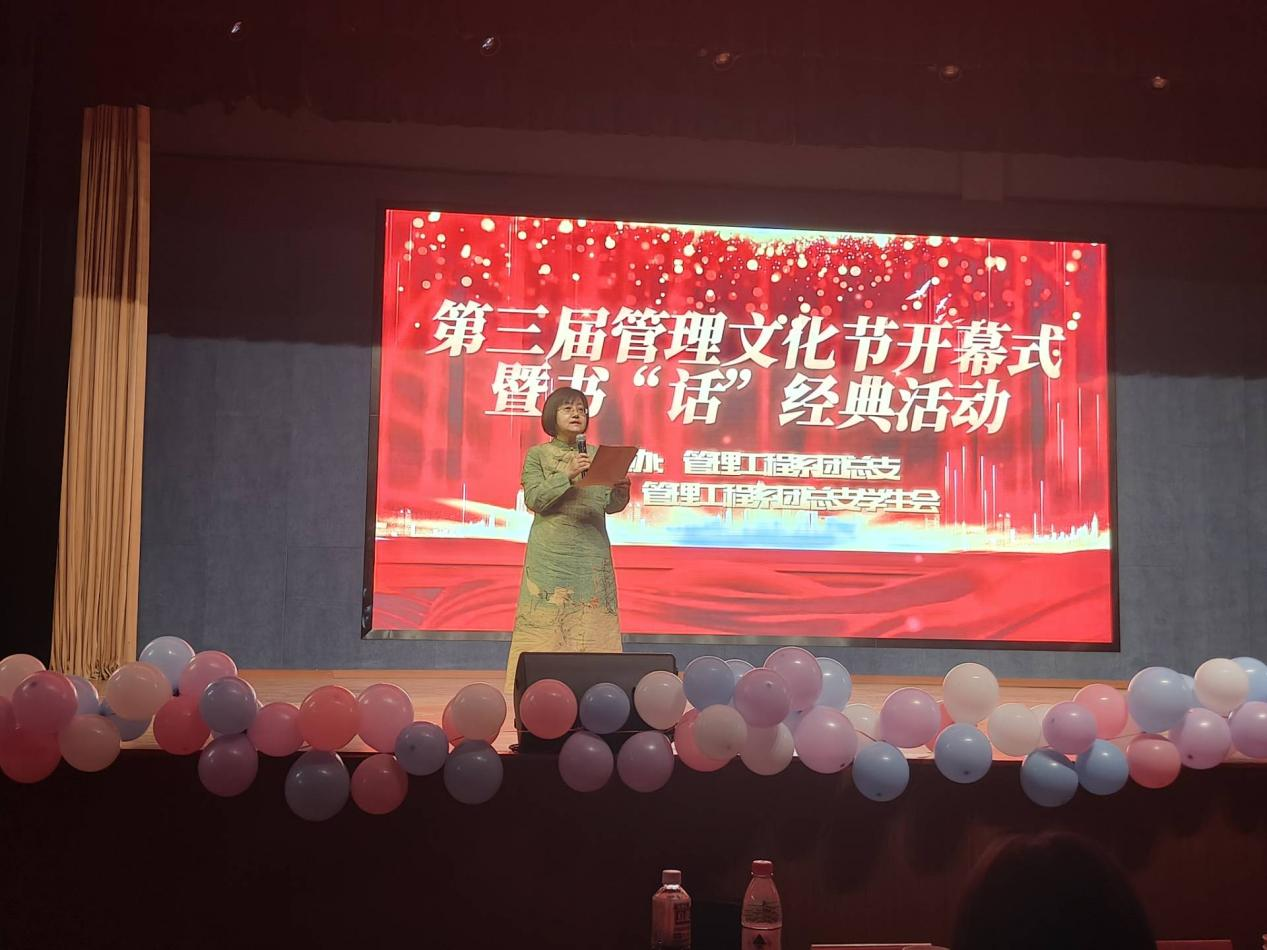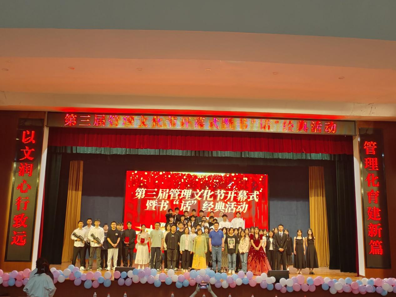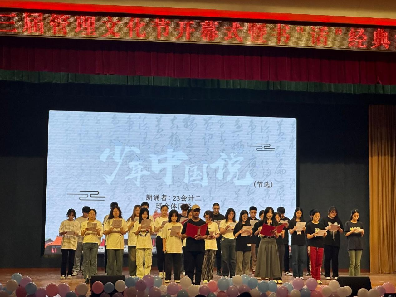 一曲開場舞后,汪思曼為本次文化節致開幕詞。她指出,一年一度的管理文化節既是加強校園文化建設、展示校園文化藝術的最佳載體,也是學校實施素質教育的重要陣地。她鼓勵同學們在積極參與文化節活動的過程中,享受快樂、鍛煉身體,體驗奮斗拼搏和團結協作精神帶來的恒久感動,體會閱讀對精神世界的豐富,欣賞音樂的韻律和唯美,感悟書法的魅力和優秀傳統文化的博大精深。她強調,廣大青年要錘煉品德、完善人格、塑造心靈、提升審美,不斷增強做中國人的志氣、骨氣、底氣,做志存高遠、德才并重、情理兼修、勇于開拓、堪當民族復興重任的時代新人,在推進強國建設、民族復興偉業中展現青春作為、彰顯青春風采、貢獻青春力量,奮力書寫為中國式現代化挺膺擔當的青春篇章!
