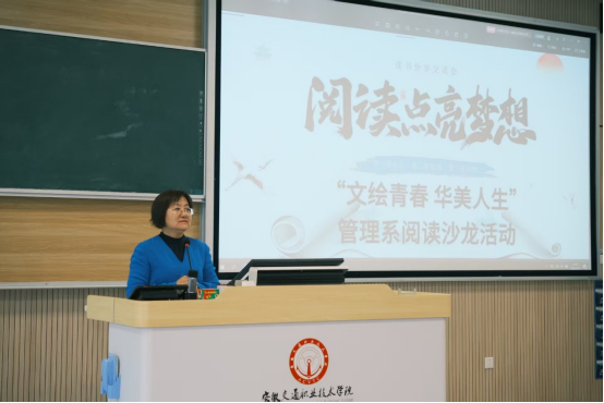 5月15日下午,管理系在尚能樓A201教室舉辦了線下閱讀沙龍活動,邀請了管理系黨總支書記汪思曼,學生管理教師王思敏、邵徐、張臘軍,物流教研室教師張馳擔任本次活動的嘉賓。來自管理系大一、大二各班的十五位選手向同學和老師們分享了他們的閱讀心得。選手們分別選擇了《長安的荔枝》《我與地壇》《平凡的世界》《三體》《與時間做朋友》等書籍,從不同的角度立意,交流分享自己讀書的感悟。整場活動營造了濃厚的讀書氛圍,活躍了緊張的學習氣氛,使整個校園滿溢書香。