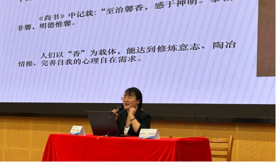 為弘揚中華優秀傳統文化,落實美育浸潤行動,5月23日,管理系邀請了文人香非遺傳承人祝玉老師在圖書館東報告廳舉辦了一場非遺文化專題講座,數百名青年學子齊聚一堂,在香韻裊裊中探尋非遺之美,探討新時代非遺文化的傳承與創新。講座由系團總支書記王思敏主持。