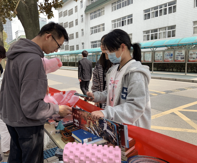 下午14:30,在化身“金牌售貨員”的同學們洪亮的吆喝聲中,義賣活動正式開始。教學樓前的主干道上人潮涌動,熱鬧非凡,玩具公仔、手工掛件、網紅零食、生活用品等義賣物品應有盡有。同學們在攤點前紛紛駐足,認真挑選著自己的心儀物品。在這輕松愉悅的活動氛圍中,愛心的種子已悄然播種在了爛漫春光里。