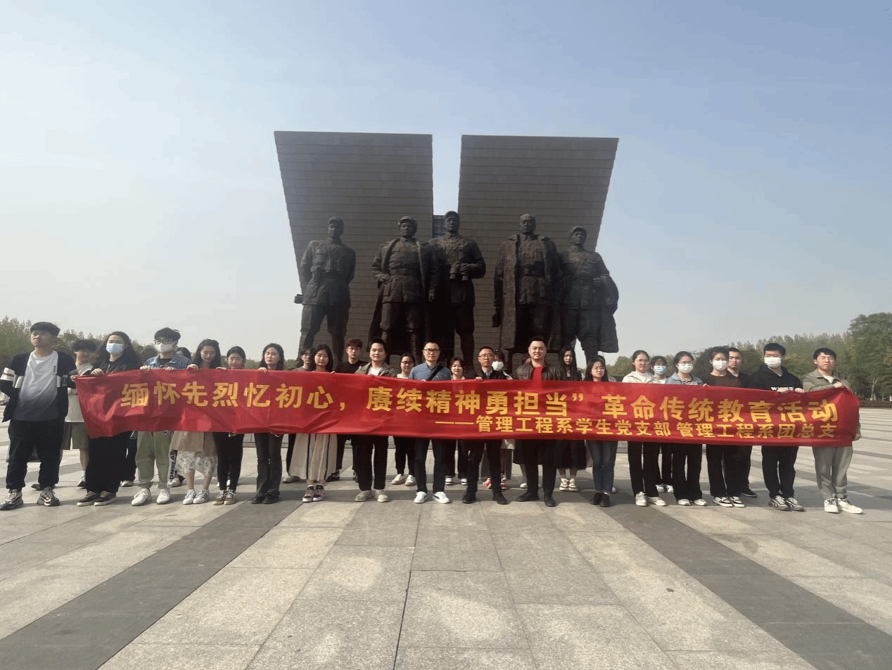 為深入學習宣傳貫徹黨的二十大精神,緬懷革命先烈,傳承紅色基因,4月12日下午,管理系黨總支副書記陶琪帶領教師黨員、學生黨員以及學生團員前往渡江戰役紀念館,開展以“緬懷先烈憶初心,賡續精神勇擔當”為主題的革命傳統教育活動。