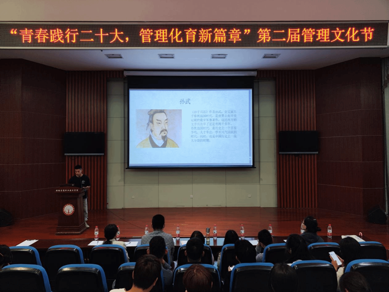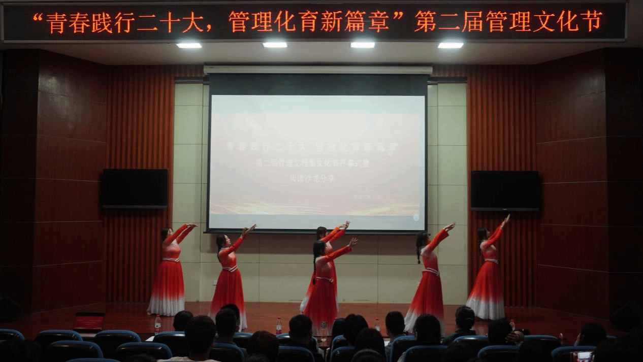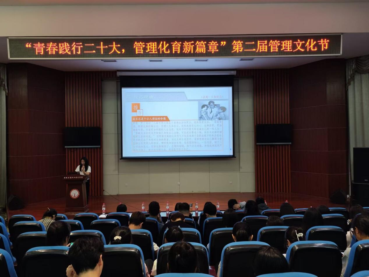 《我的未來式》開場舞后,汪思曼為本次文化節致開幕詞。她指出,一年一度的管理文化節,既是加強校園文化建設、展示校園文化藝術的最佳載體,也是學校實施素質教育的一塊重要陣地。她鼓勵同學們在積極參與文化節活動的過程中,享受快樂、鍛煉身體,體驗奮斗拼搏和團結協作精神帶來的恒久感動,體會閱讀對精神世界的豐富,欣賞音樂的韻律和唯美,感悟書法的魅力和優秀傳統文化的博大精深。她強調,廣大青年要牢記黨的教誨,立志民族復興,不負韶華、不負時代、不負人民。一要做到堅定信仰,增長智慧,既多讀“有字之書”,從書本中汲取真知灼見,又多讀“無字之書”,從社會實踐中積累人生經驗和社會知識;二要做到提高本領,敢于擔當,用“初生牛犢不怕虎”的銳氣,在新征程上奮楫篤行。