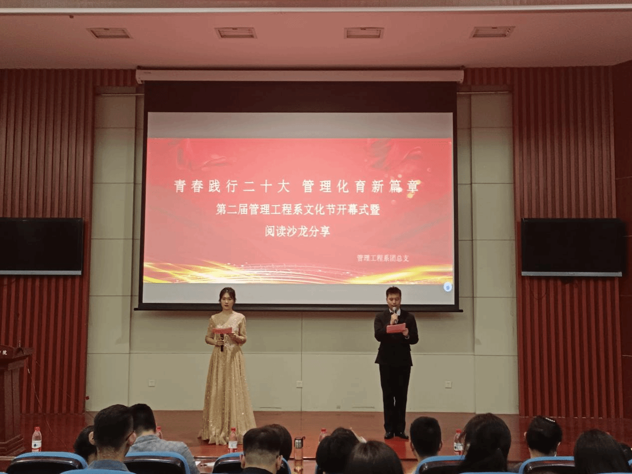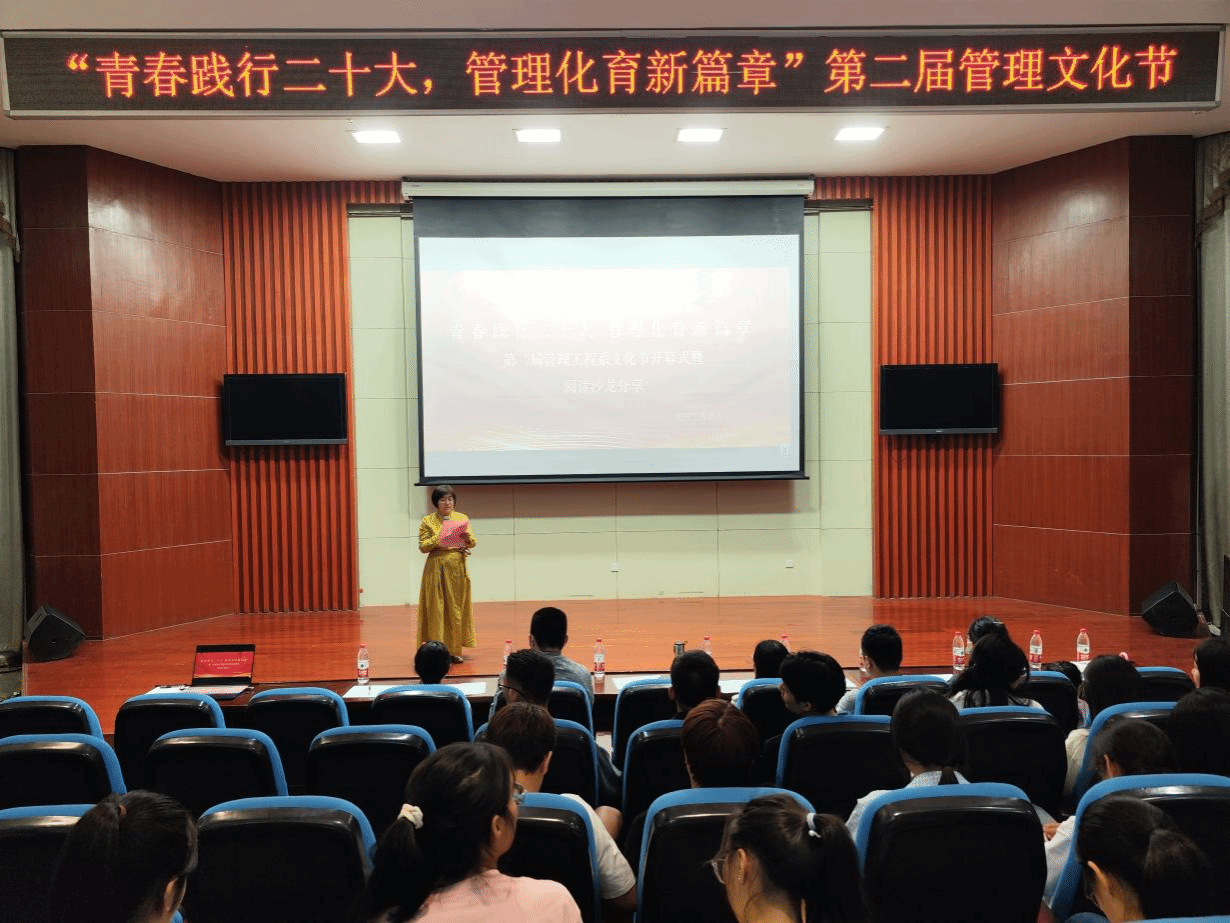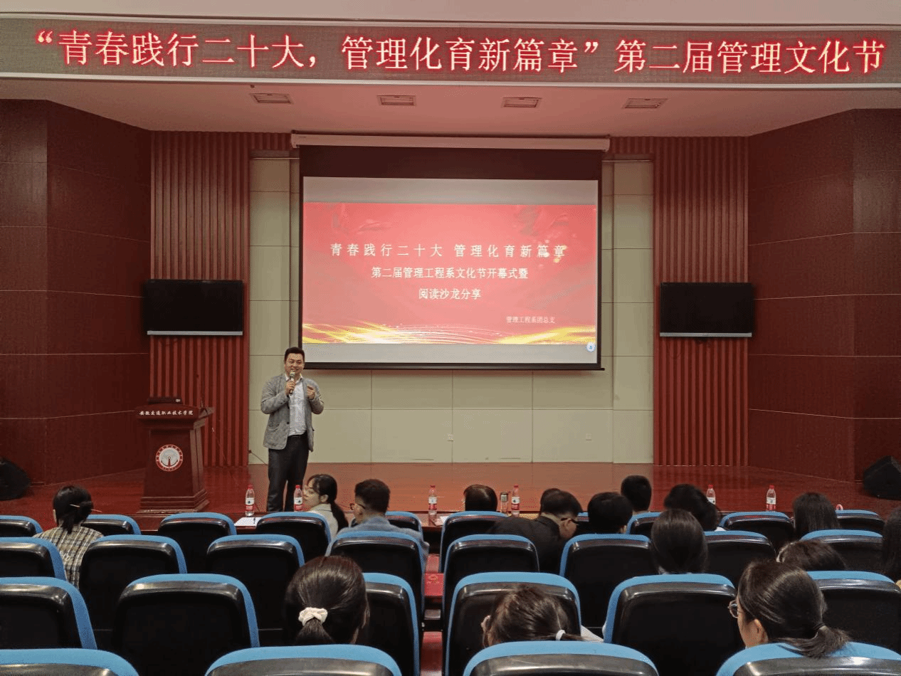 為全面學習宣傳貫徹黨的二十大精神,傳承“五四”精神,推進校園文化建設,進一步落實“五育”并舉的要求,5月4日,管理系團總支在八角樓學術報告廳舉辦第二屆管理文化節開幕式暨閱讀沙龍活動。管理系黨總支書記汪思曼、副書記陶琪、院團委書記劉元元、團委委員王萌鈺以及系學管教師出席本次開幕式,并擔任閱讀沙龍活動評委。