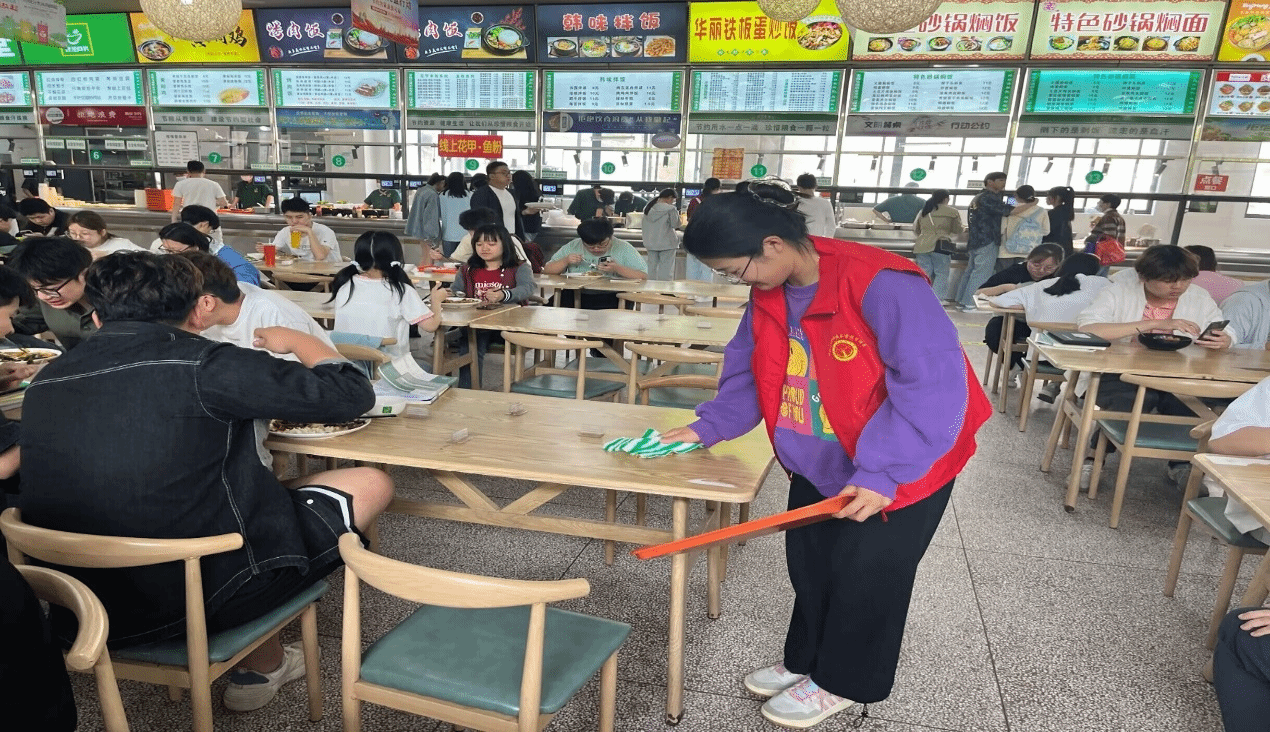 5月8日至10日,管理系志愿者們深入北區食堂,按照具體分工開展志愿服務工作。有的志愿者認真維持就餐秩序,引導同學們按照排隊順序依次刷卡付款;有的志愿者向就餐結束的同學發出溫馨提示,提醒同學們及時將餐盤放到指定回收點;有的志愿者協助食堂工作人員將垃圾進行分類,宣傳垃圾分類知識,幫助同學們樹立垃圾分類意識,養成良好的食堂就餐習慣。