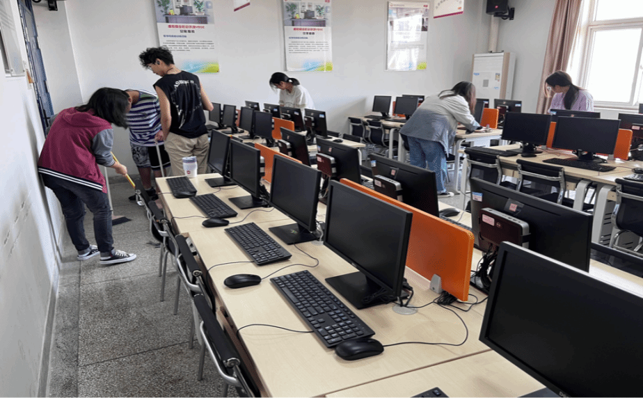5月11日至12日,志愿者們分組對教室、實訓室等校園場所開展衛生清掃活動。他們手拿抹布和掃帚,通力協作,互相配合,認真仔細地打掃干凈所負責區域內的每一個角落。經過志愿者們的辛勤勞動,清掃后的教室及實訓室干凈整潔、煥然一新。