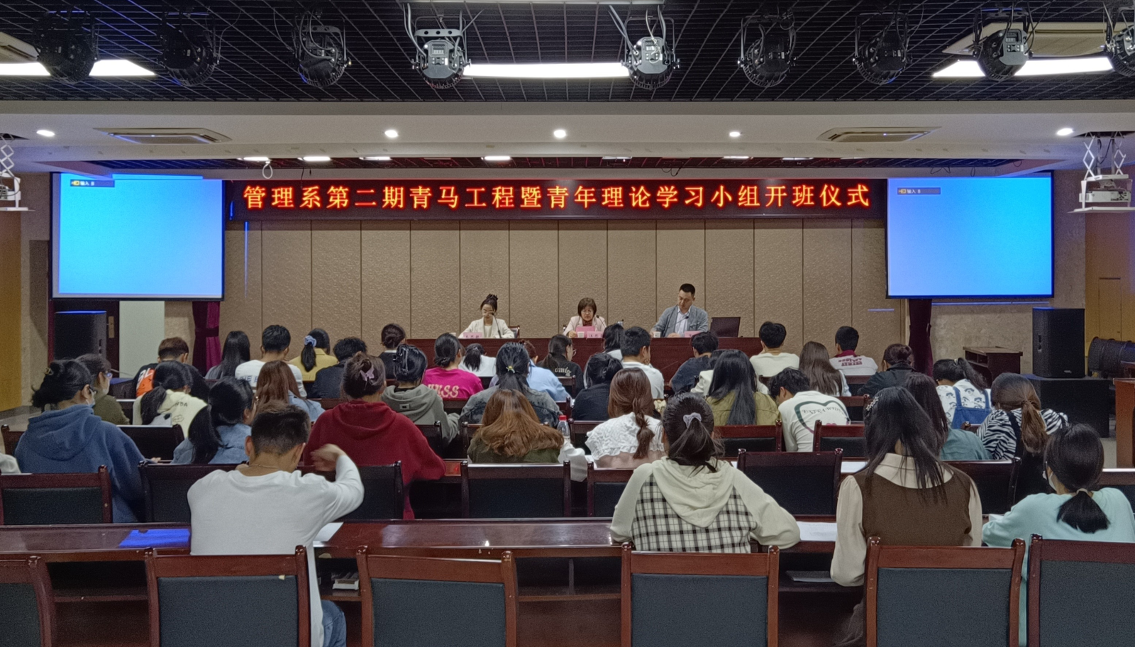 為深入學(xué)習(xí)宣傳貫徹黨的二十大精神,落實(shí)習(xí)近平總書記關(guān)于青年工作的重要思想,進(jìn)一步動(dòng)員、組織廣大團(tuán)員青年行動(dòng)起來,共筑青春夢(mèng),同圓中國(guó)夢(mèng),在廣大團(tuán)員青年中著力培養(yǎng)、造就一批用馬克思主義中國(guó)化的最新成果武裝的馬克思主義者,管理系于5月22日在大學(xué)生活動(dòng)中心舉行第二期“青馬工程”暨青年理論學(xué)習(xí)小組開班儀式。管理系黨總支書記汪思曼、副書記陶琪,第二期青馬工程和青年理論學(xué)習(xí)小組學(xué)員參會(huì),開班儀式由系團(tuán)總支書記王思敏主持。