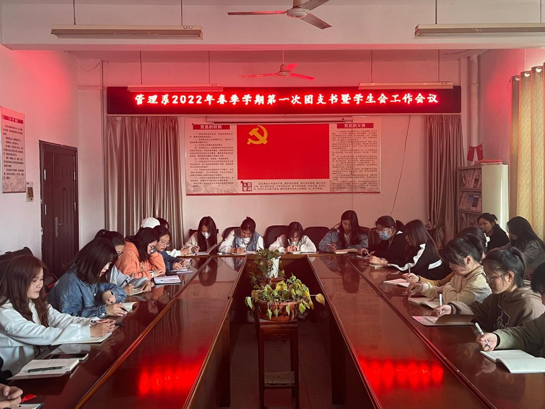 2022年3月9日下午,管理系團(tuán)總支在系會(huì)議室召開2022年春季學(xué)期第一次團(tuán)支書暨學(xué)生會(huì)工作會(huì)議,系學(xué)生會(huì)各部門負(fù)責(zé)人及20級(jí)、21級(jí)各班團(tuán)支書參會(huì),會(huì)議由管理系團(tuán)總支書記王思敏主持。