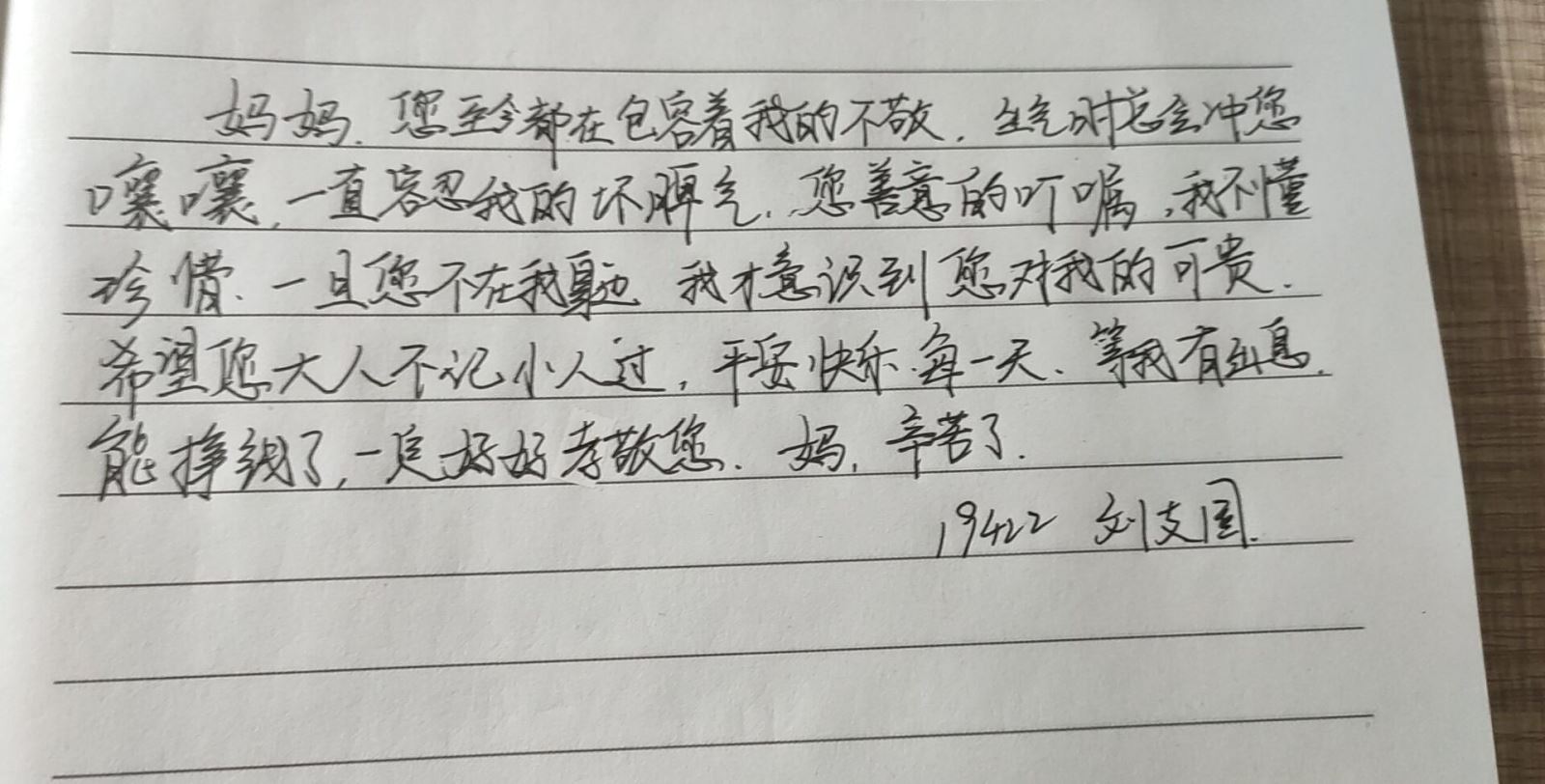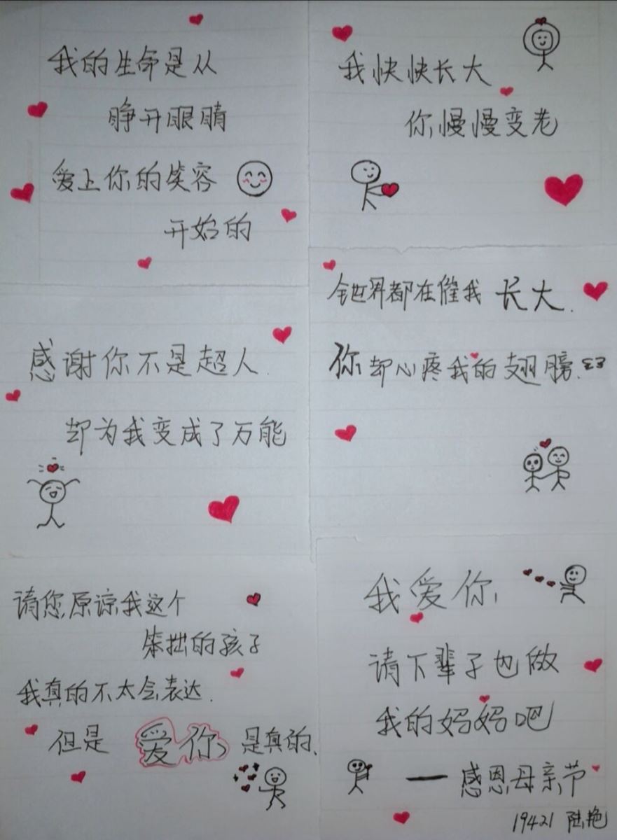 由于疫情的原因,學生們居家線上學習,所以此次活動的開展采取了線上線下相結合的模式。學生們通過線下幫助母親做家務,與母親進行面對面的談心交流,送母親節小禮物等方式表達了自己對母親的愛與感謝之情。與此同時,他們將這份感恩之情通過“一封家書”的形式書寫出來,由系學生會生活部收集后,統一進行線上展示。此次活動,提升了學生們的人文素養,進一步培養了他們的感恩意識,鼓勵學生們表達自己對母親的情感的同時,也讓學生們體會到了母親對自己深沉的愛。