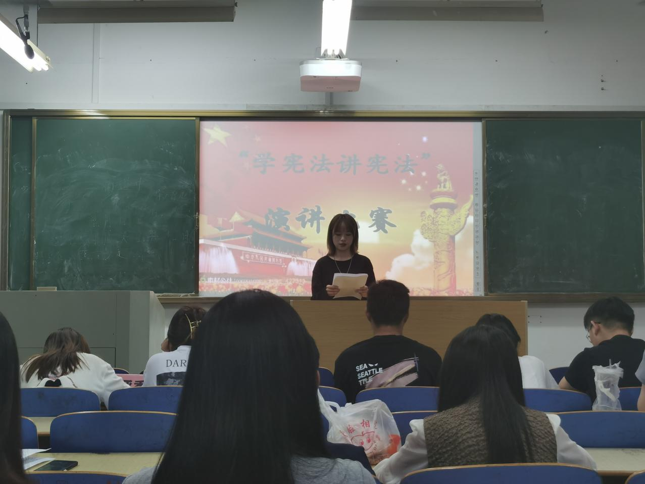 這次比賽不僅讓同學(xué)們深刻記憶了和憲法有關(guān)的知識、故事,同時還鍛煉了選手的能力,深化了大學(xué)生對憲法的認(rèn)識和理解,使大學(xué)生進(jìn)一步深入了解憲法、尊崇憲法,弘揚憲法精神,增強法治觀念。