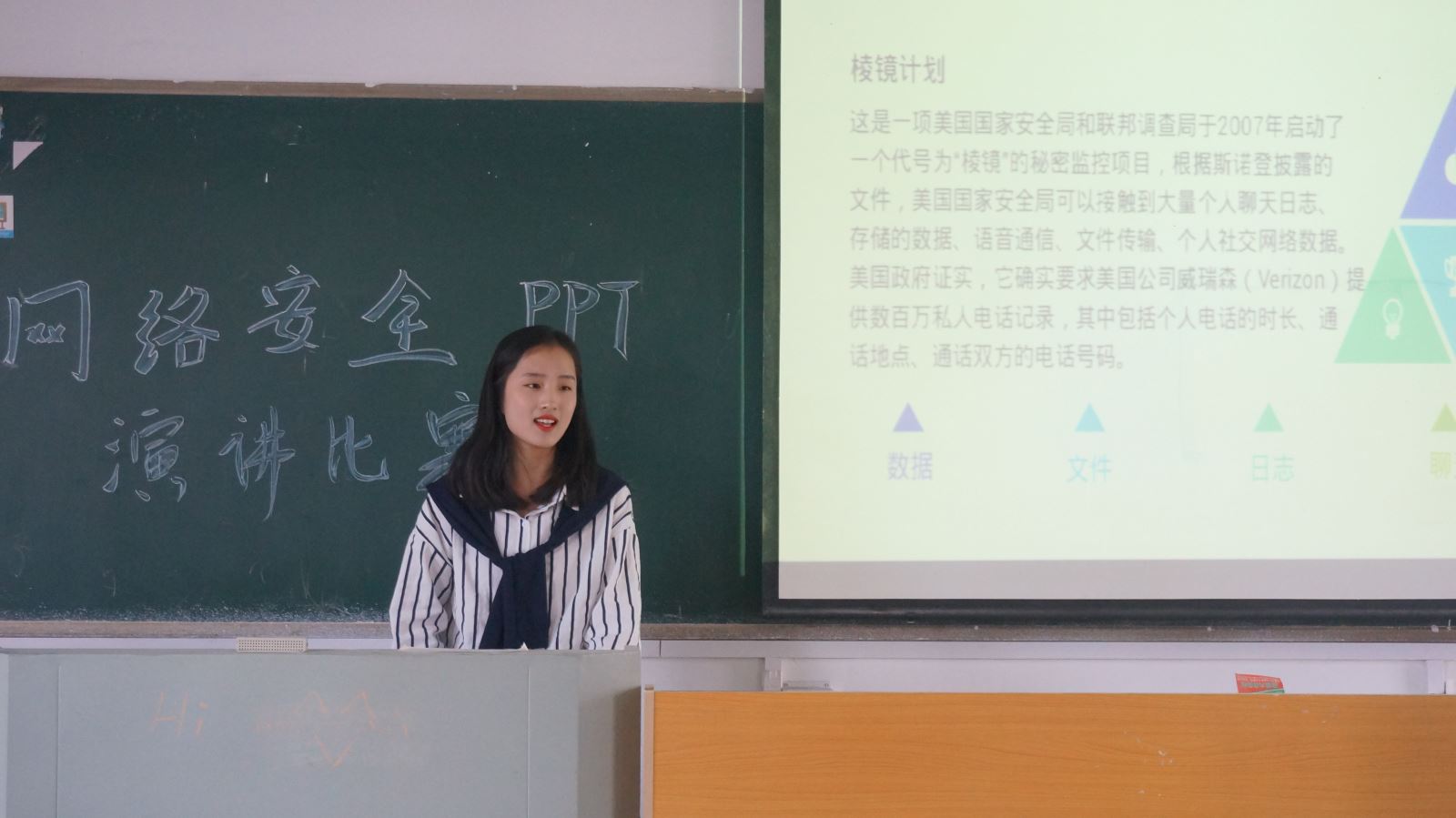 為提高大學生網絡安全意識,我系學生會于9月26日下午舉辦了網絡安全PPT演講比賽,同學們用精彩而有趣的演講告誡我們,只有正確的使用網絡才能使我們在體驗網絡的快樂,享受網絡的便捷的同時,不掉入網絡陷阱。