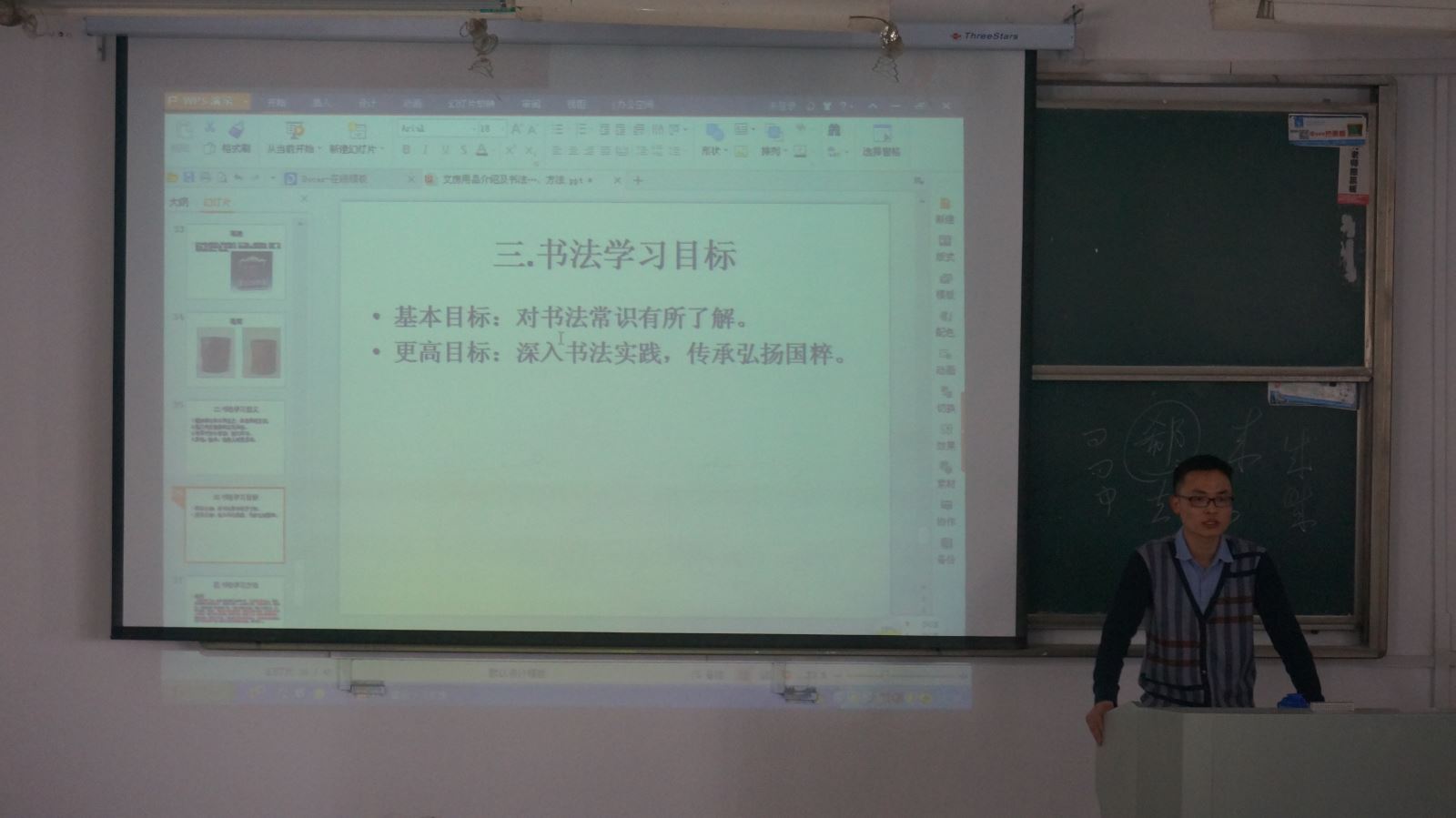 為大力弘揚中華優秀傳統文化,搭建大學生書畫愛好者學習交流平臺。3月28日下午三時,我系學生會在北區教學樓東階501教室舉辦書法講座,由邵徐老師擔任主講。