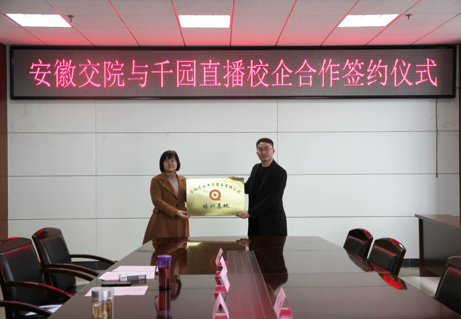 3月11日上午,學(xué)院與合肥千園直播舉行校企合作簽約儀式。副院長(zhǎng)王豐勝、千園直播聯(lián)合創(chuàng)始人兼人力總監(jiān)李輝、管理系黨總支書記汪思曼、管理系主任劉安婕以及電子商務(wù)教研室部分骨干教師和企業(yè)隨行人員參加了本次簽約儀式。