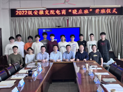 4月26,管理工程系與安徽曉莊信息技術有限公司在系會議室共同舉行2022級電商曉莊班開班儀式,管理系主任岳朝暉、安徽曉莊副總經理王朝暉以及校企雙方有關負責人、曉莊班全體學員參會,會議由管理系黨總支副書記陶琪主持。