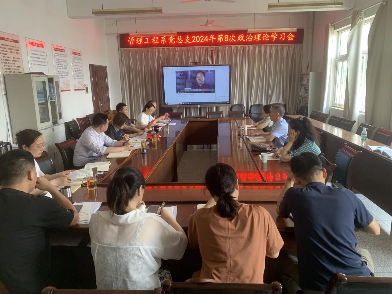 5月20日上午,管理工程系黨總支召開2024年第8次政治理論學習會,院黨委委員、紀委書記季傳友到會巡聽指導,組織人事處、院紀委相關同志參加巡聽。