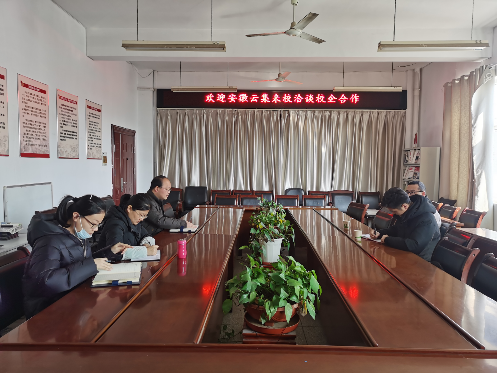 云集業務版塊負責人劉總詳細介紹了安徽云集的基本情況、業務范圍,校企合作招聘負責人龔經理重點介紹了安徽云集已開展的校企合作項目和目前進展情況,針對下一年度的重要時間截點、工作安排、人才儲備計劃、校企資源共享等方面開展了深入交流,希望通過校企合作,實現學校、企業、學生多方共贏。