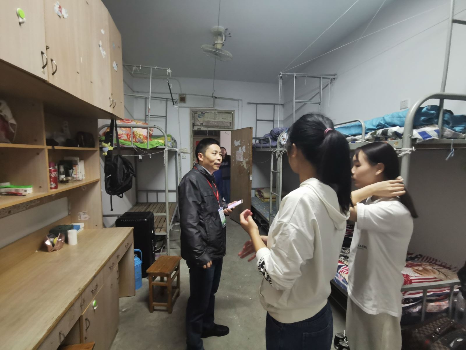 10月7日當晚,系黨總支書記汪思曼帶隊,2020級新生輔導員陪同,走訪了新生宿舍。他們傾聽新生訴求、了解新生困難,仔細查看了寢室的各種設施是否完善,宿舍水電、空調能否正常使用。最后,叮囑新生要加強疫情防控意識,注意保暖、預防感冒,培養良好的生活作息習慣,盡快融入大學生活,適應自己的新角色。