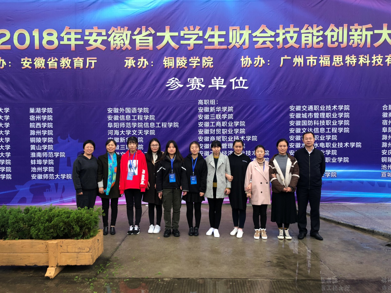 2018年11月18日,由安徽省教育廳主辦,銅陵學院承辦,廣州福斯特科技有限公司協辦的安徽省大學生財會技能創新大賽在銅陵學院隆重舉行。本屆大賽首先經過校級預賽遴選和推薦,最終由全省各高職院校的53支參賽隊212名參賽選手參加比賽。我院共兩支代表隊報名參賽,管理工程系韓素蘭、謝婉麗和鄭天佑老師擔任兩支參賽隊的參賽指導。16會計1班選手黃進、侯曼、余夢雅和16會計3班選手金娟組成的參賽一隊,榮獲二等獎;16會計2班選手高遠、牟丹和16會計3班選手張夢琴、邵玉杰組成的參賽二隊榮獲三等獎。
