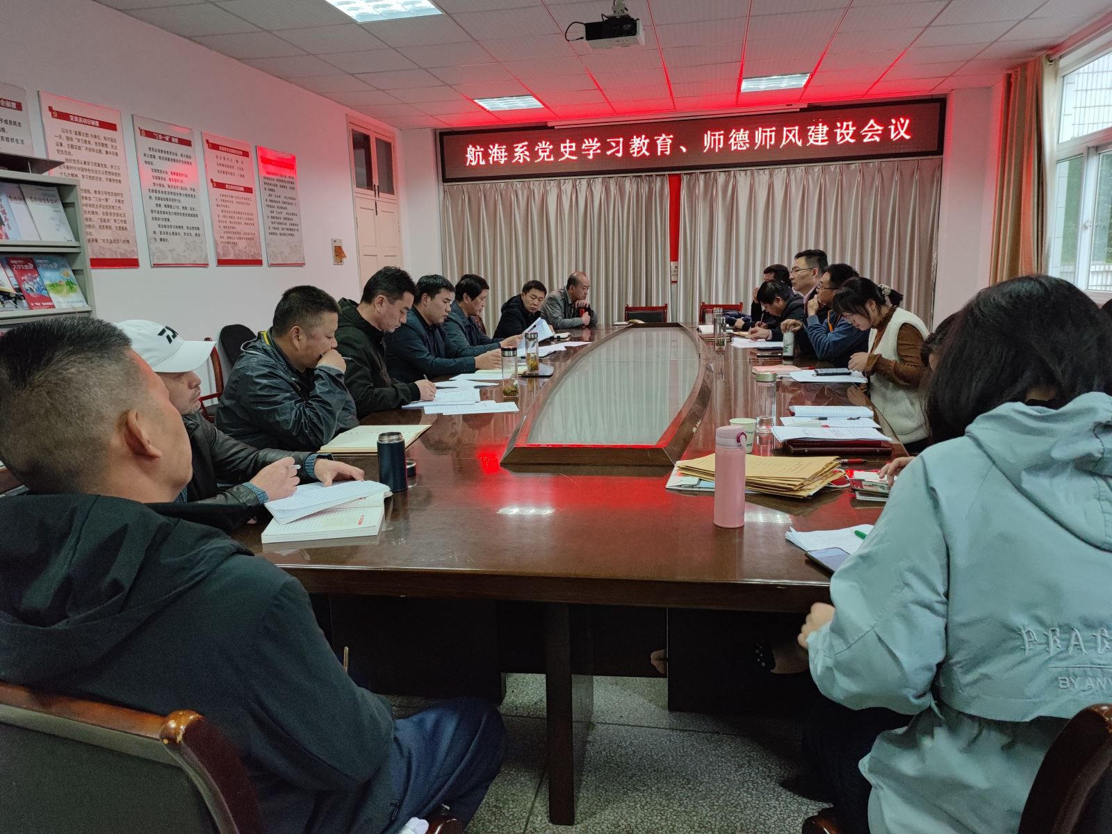 為切實推動黨史學習教育與師德師風建設協同共進,進一步提高全系教職工的思想政治素質和職業道德水平,營造風清氣正的育人環境,10月20日,航海系黨支部書記陶權主持召開系黨史學習教育、師德師風建設會議,副主任(主持工作)劉超、副主任王在高出席會議,系全體教師參加會議。