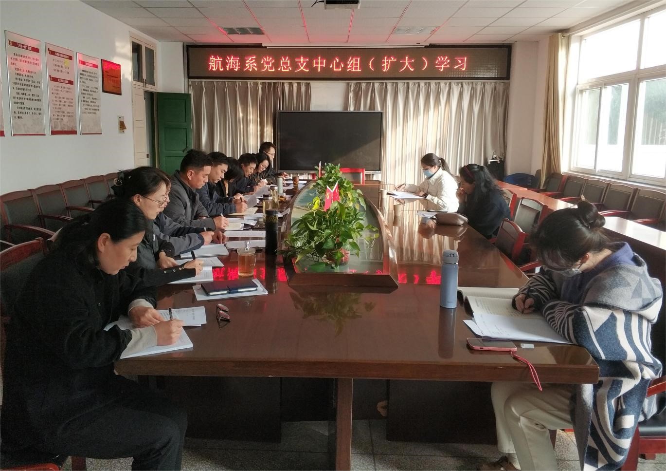 2023年11月30日下午,航海系黨總支在系會議室召開黨總支中心組(擴大)第一次學習會,會議由黨總支書記劉超主持,院紀委、組織人事處人員到會巡聽。