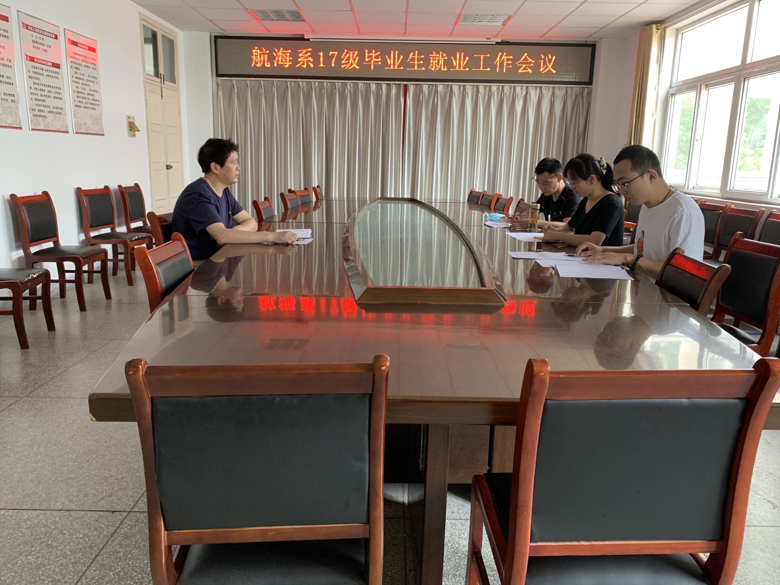 臨近7月,各系面臨的頭等大事就是畢業生就業工作。6月28日下午,航海系召開了17級畢業生就業工作會議,系書記陶權主持會議,各畢業班輔導員及負責就業的老師參加會議。