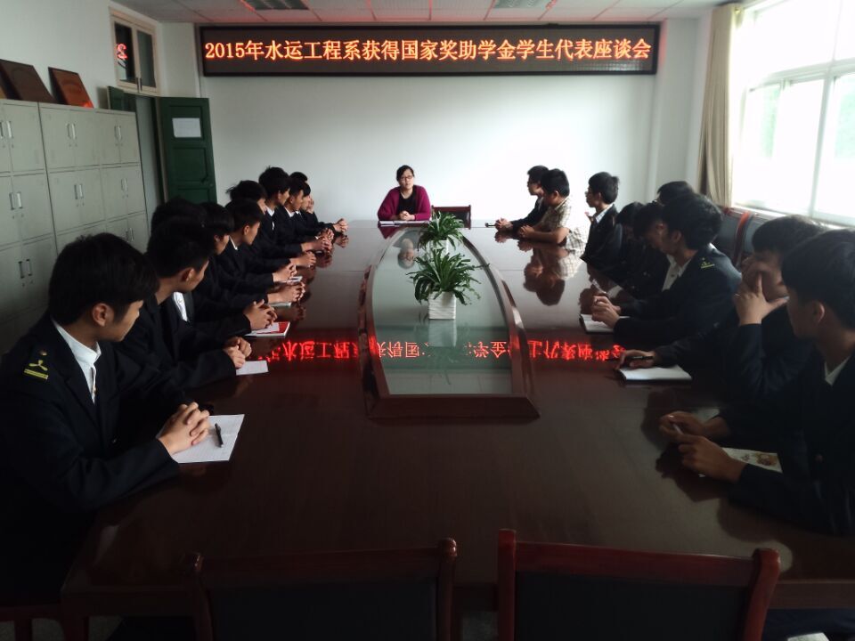 2015年5月11日,水運工程系召開了獲得2015年國家獎助學金學生代表座談會,水運系學生資助中心李蓓老師主持會議。