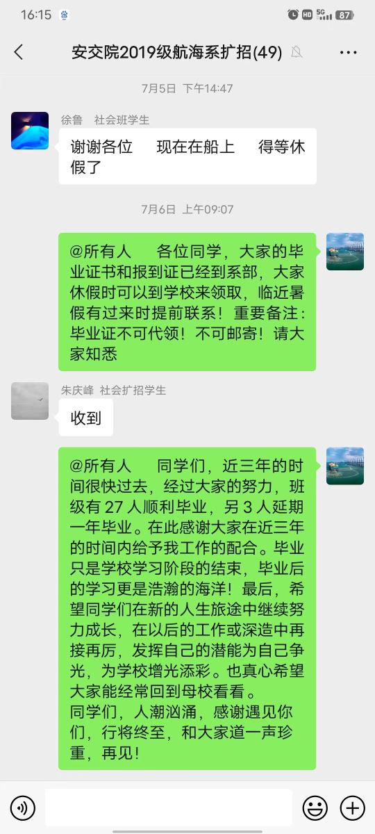 航海系積極落實學院疫情防控精神,畢業班只有少數同學返校,各畢業班輔導員開展了線上主題班會,與班級學生溝通畢業前夕的各項手續流程,傳達學院的畢業安排,叮囑大家在離校前收拾好個人用品,打掃宿舍衛生,回家路上做好個人防護?;貞洿髮W生活的點點滴滴,師生共敘離別情。