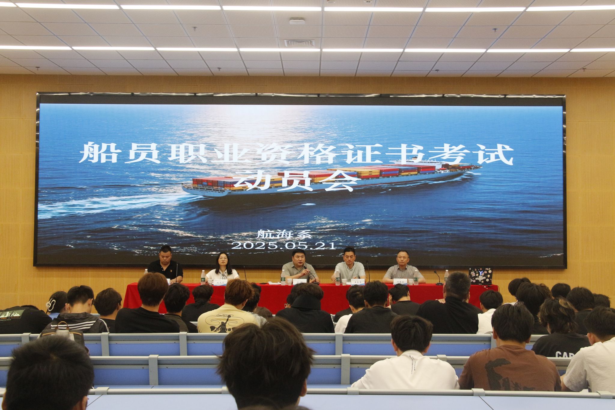 為進一步激發學生的學習熱情,提升適任證書考試參考率與通過率,5月21日,航海系在圖書館報告廳召開海員職業資格證書考試動員大會。航海系領導班子成員、航海技術教研室、輪機工程技術教研室相關教師與航海系2023級、2024級300余名學子共聚一堂,為備考之路指明方向。會議由系黨總支書記、主任劉超主持。