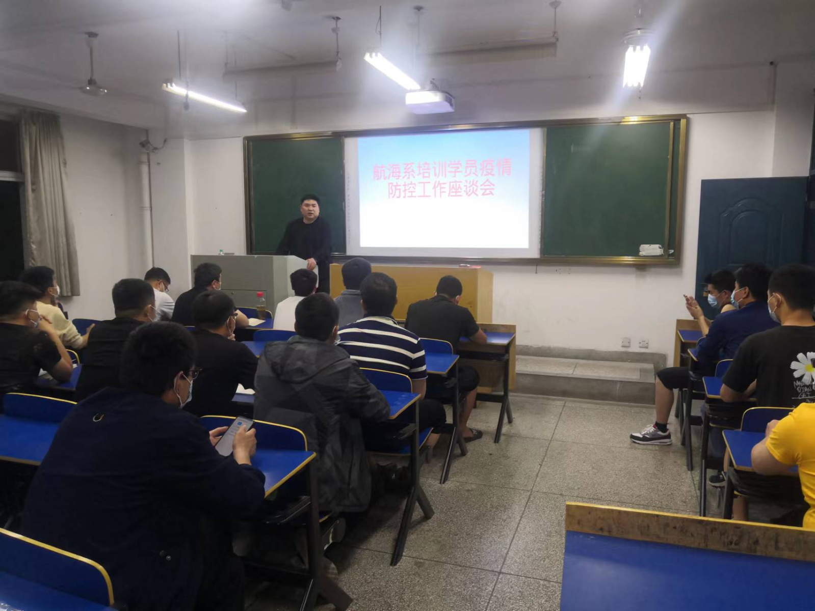 為深入貫徹省廳、學院關于疫情防控相關要求,進一步做好培訓學員疫情防控工作,確保疫情期間的校園安全,4月21日晚,航海系主任劉超主持召開培訓學員疫情防控工作座談會,各班長、寢室長、培訓學員代表及船員培訓中心全體人員參加了會議。