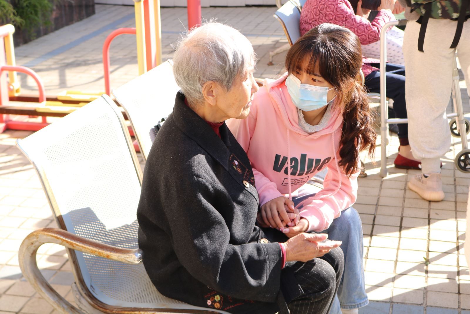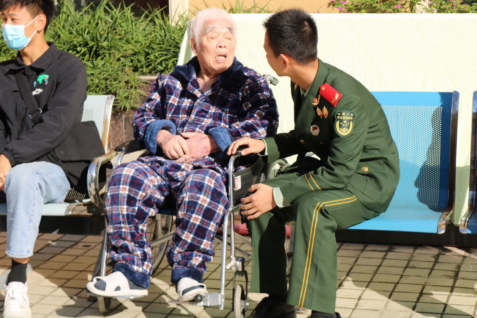 隨后,同學(xué)們攙扶老人、推著輪椅將老人們帶到院子里曬太陽,并將自己的外套給他們蓋上。在院子里,同學(xué)們主動向老人們表演節(jié)目,無論是活潑帥氣的街舞,還是散發(fā)著青春活力的吉他,亦或是奏響青春的薩克斯,都給在場的老人們帶來了一陣陣歡聲笑語。聽到老人們發(fā)自內(nèi)心由衷的感謝,同學(xué)們心頭暖暖的,一種久違的溫馨和家人的關(guān)懷圍繞在老人的心中。