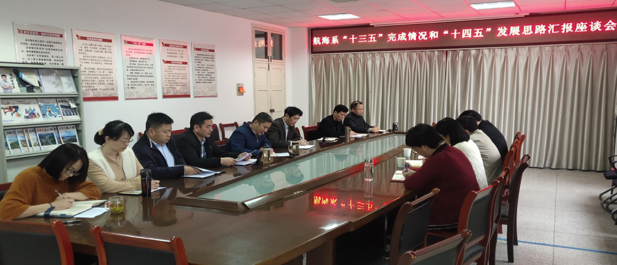 會上,王東主任介紹了航海系的現(xiàn)狀和“十四五”規(guī)劃的編制原則及編制思路;王在高副主任匯報(bào)了航海系“十三五”規(guī)劃的完成情況和“十四五”規(guī)劃編寫的整體框架;系辦公室主任李蘭、輪機(jī)教研室主任祖濟(jì)勝、航海教研室主任張守甫、培訓(xùn)中心主任何德榮、主任輔導(dǎo)員卜麗媛,分別就“十四五”中的師資、教科研、實(shí)驗(yàn)實(shí)訓(xùn)室建設(shè)、專業(yè)建設(shè)、社會服務(wù)和招生就業(yè)等方面做了詳細(xì)匯報(bào)。調(diào)研組針對師資隊(duì)伍建設(shè)、實(shí)訓(xùn)條件建設(shè)等重點(diǎn)問題提出了具體的指導(dǎo)建議。最后,陶權(quán)書記表達(dá)了對調(diào)研組的感謝,并表示要認(rèn)真研究調(diào)研組提出的指導(dǎo)意見,編制出科學(xué)合理的“十四五”發(fā)展規(guī)劃,為學(xué)院的蓬勃發(fā)展貢獻(xiàn)力量。