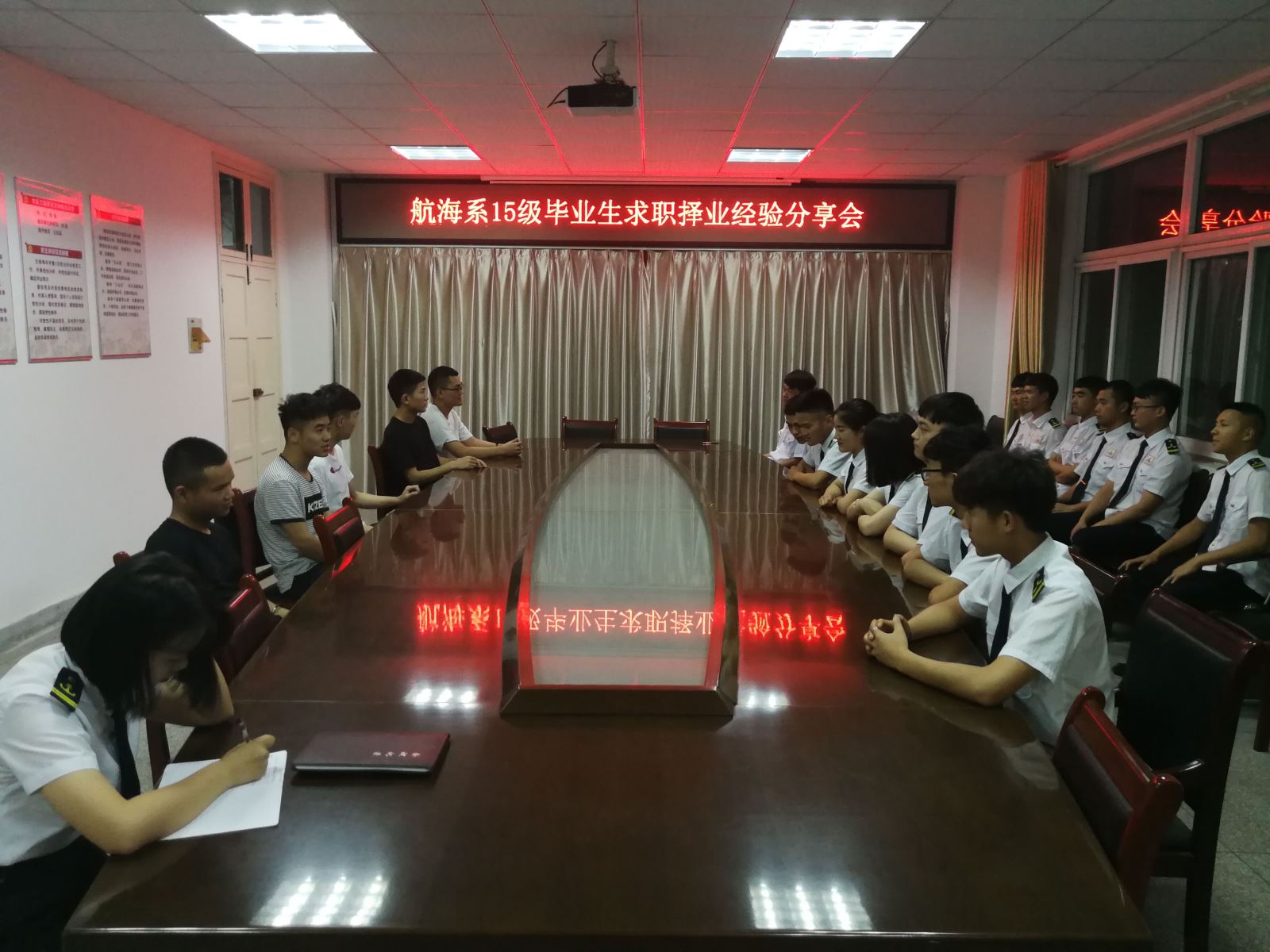 航海系還舉行了2018屆畢業(yè)生求職擇業(yè)經(jīng)驗(yàn)分享會(huì),邀請(qǐng)了15級(jí)的幾位畢業(yè)生同學(xué)為航海系低年級(jí)的學(xué)生作經(jīng)驗(yàn)交流。這幾位畢業(yè)生的就業(yè)方向各不相同,有自主創(chuàng)業(yè)成功的,也有考到大證上船成為船員的,還有進(jìn)私企的,盡量滿足有不同就業(yè)意向的學(xué)生。通過(guò)交流學(xué)習(xí)、找工作中的各種瑣事,為低年級(jí)學(xué)生提供一些建議,盡量避免他們走入誤區(qū)。