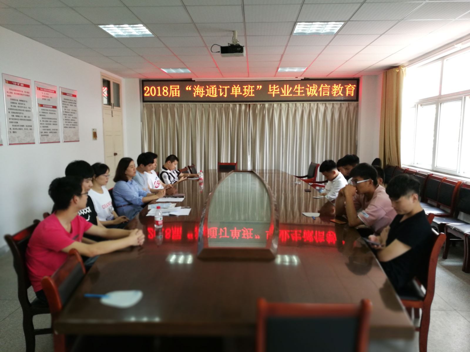 系書(shū)記朱蓉給15級(jí)海通訂單班的學(xué)生進(jìn)行了誠(chéng)信教育。朱書(shū)記表示,15級(jí)海通訂單班是我系首屆訂單班,對(duì)于這些學(xué)生的就業(yè),學(xué)校和企業(yè)尊重學(xué)生的個(gè)人選擇。這個(gè)班級(jí)為我們?nèi)蘸蟮挠唵伟喙ぷ魈峁┝艘粋€(gè)努力的方向。