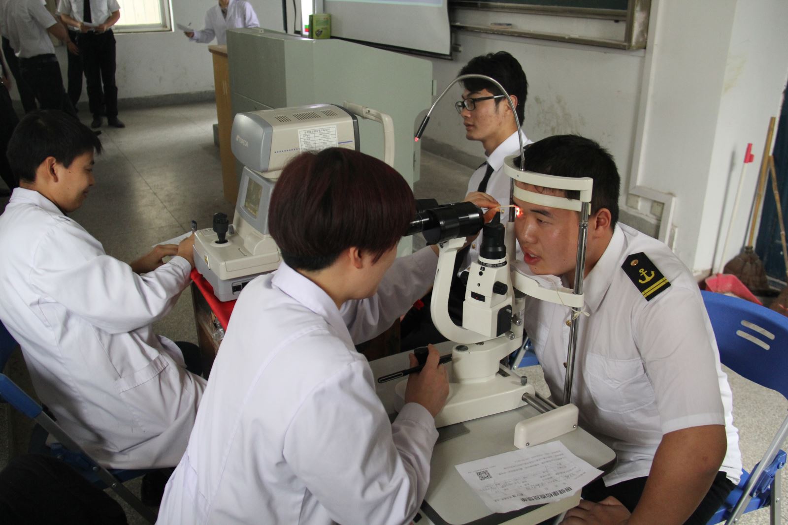 講座結束后,愛爾眼科醫院的醫生們為同學們進行免費的視力檢查,針對同學們不同的視力情況提出了初步的解決方法。同學們秩序井然的排隊進行檢查,體現了我系半軍管成效,得到了醫生們的一致好評。