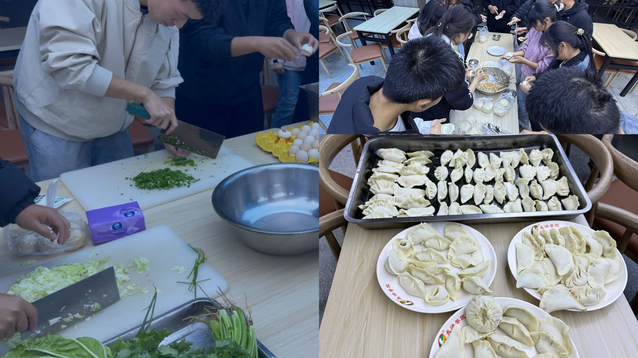 活動(dòng)籌備階段, 同學(xué)們自發(fā)分組采購食材?布置場(chǎng)地,從選菜?調(diào)餡到搟皮,全程分工協(xié)作,各項(xiàng)準(zhǔn)備工作有條不紊的開展? 活動(dòng)現(xiàn)場(chǎng),大家圍坐桌前, 捏出形態(tài)各異的餃子: 有的圓潤飽滿, 有的創(chuàng)意十足 ,用玉米粒等裝飾成“萌趣造型”,現(xiàn)場(chǎng)氣氛溫馨,充滿歡聲笑語。