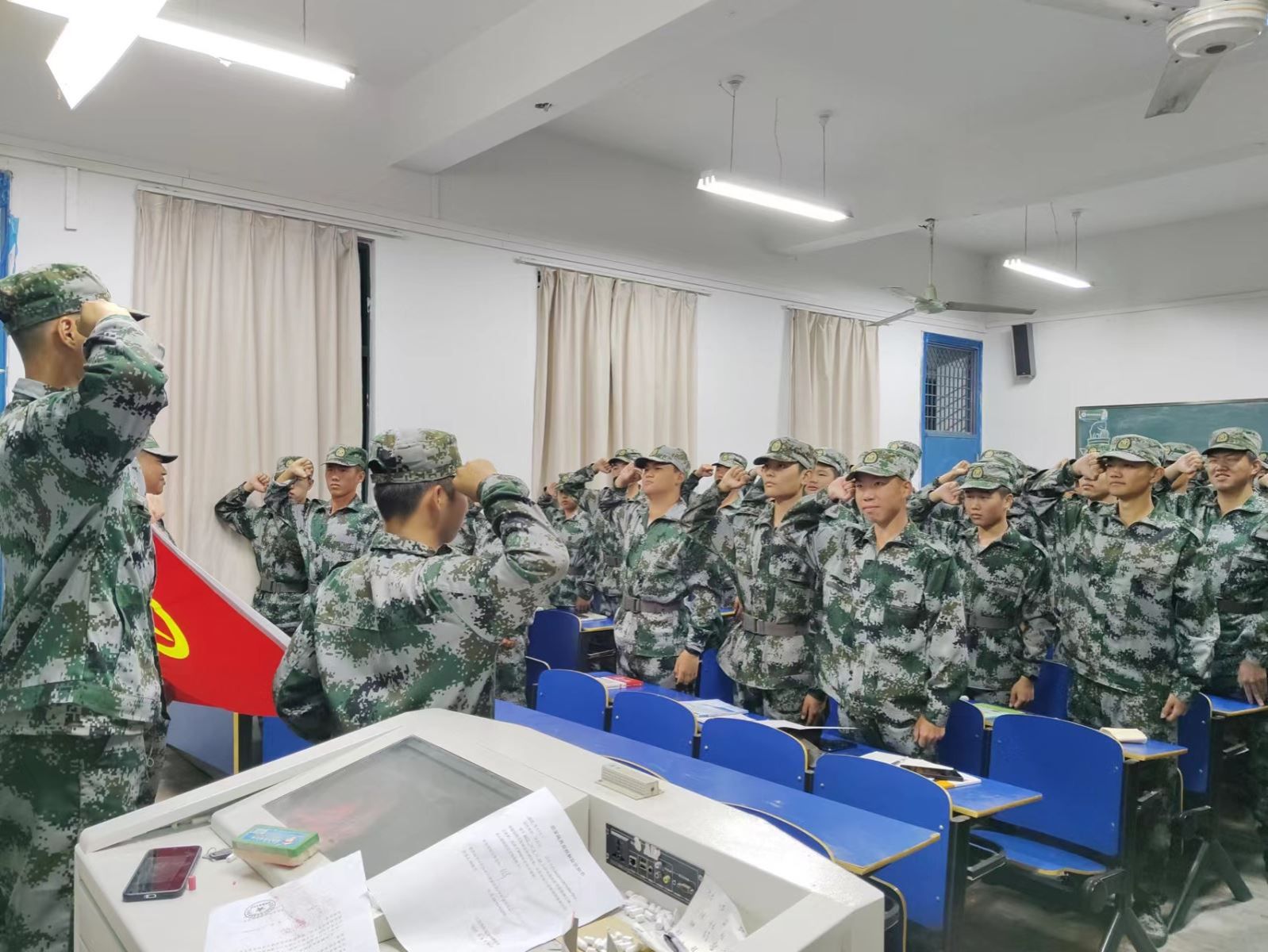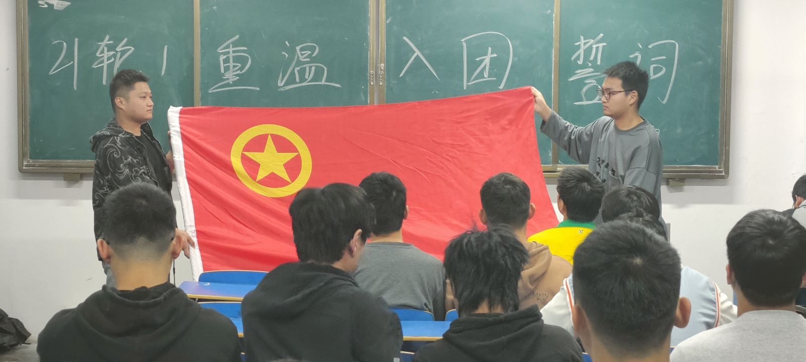 “我志愿加入中國共產主義青年團,堅決擁護中國共產黨的領導,遵守團的章程……為共產主義事業而奮斗。”在火紅的團旗前,團員青年們舉起了右手再次宣誓,重溫了當年入團時許下的神圣誓言。錚錚誓言,火熱青春。簡短、莊重、熱烈的宣誓儀式,讓同學們再次明確了自己的共青團員身份,同時明確了自己的義務和職責,自覺加強組織性、紀律性,增強了各團支部的向心力與戰斗力。
