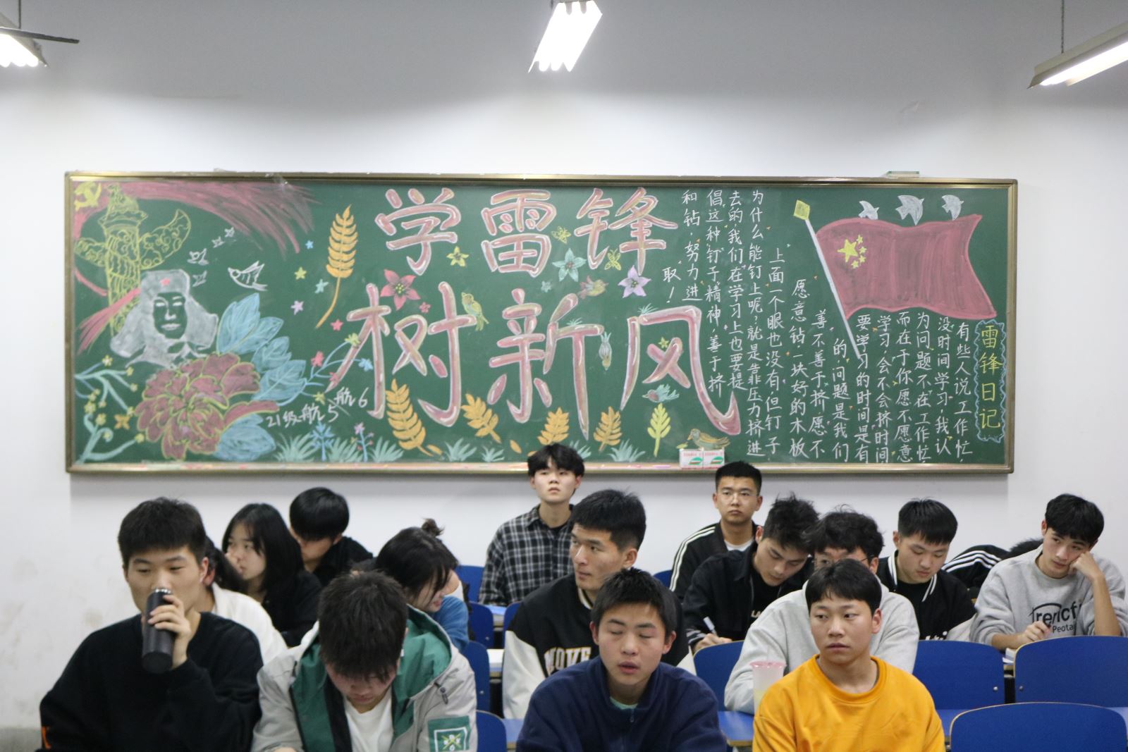 3月中旬,航海系各團支部開展了“向雷鋒同志學習”主題板報評比活動。活動中,各班學生積極參與、精心設計,充分利用黑板報這塊宣傳陣地,對雷鋒的生平事跡進行全方位報道,展現(xiàn)雷鋒的光輝形象,弘揚雷鋒的“釘子精神”,歌頌雷鋒“全心全意為人民服務”的高尚品質,展示了同學們對雷鋒精神的感悟和理解。一幅幅主題鮮明、形式新穎獨特的黑板報作品,給老師和同學們留下了深刻的印象。