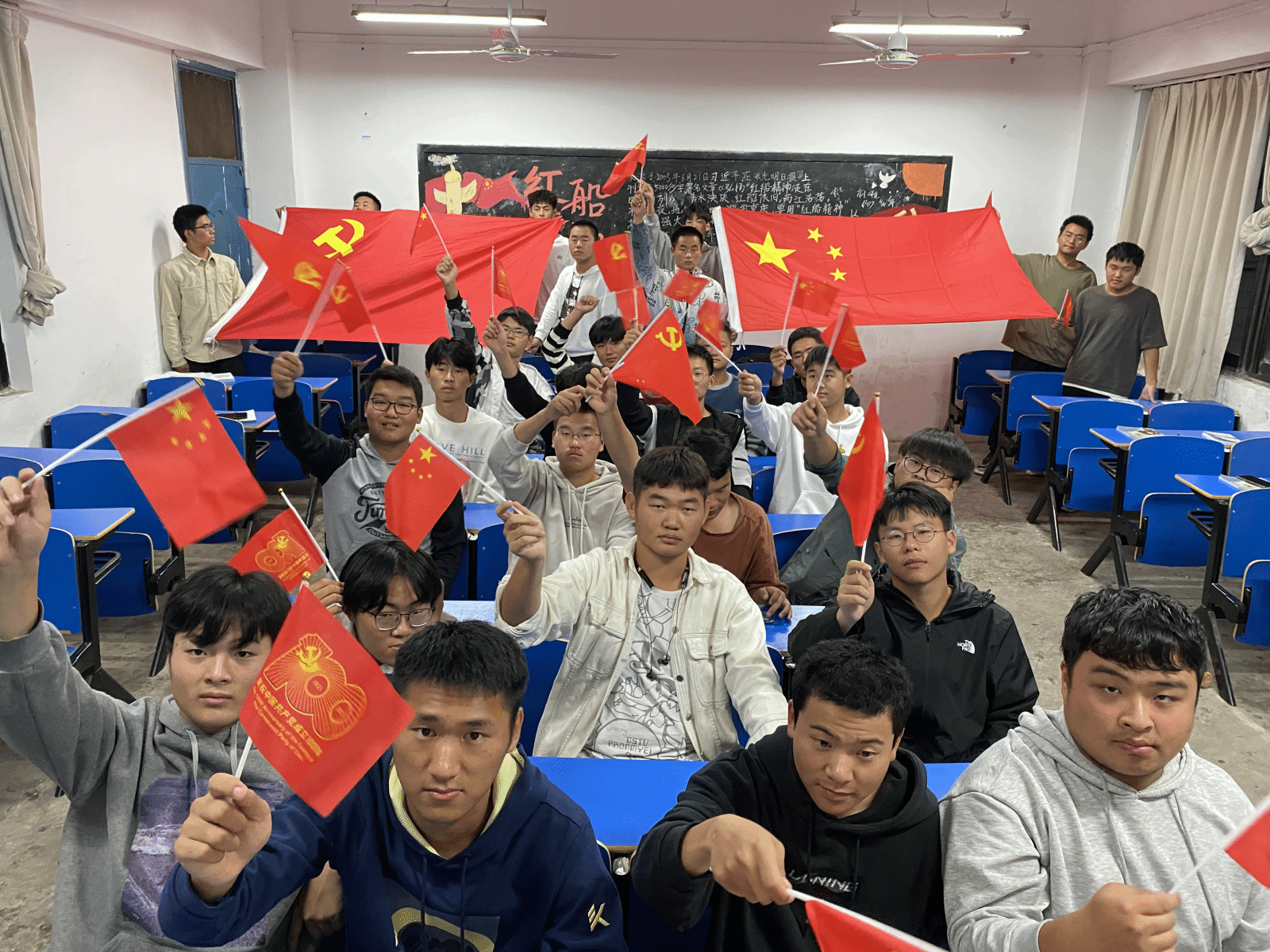 航海系開展“請黨放心、強國有我”主題團日活動--我和黨旗、國旗合個影