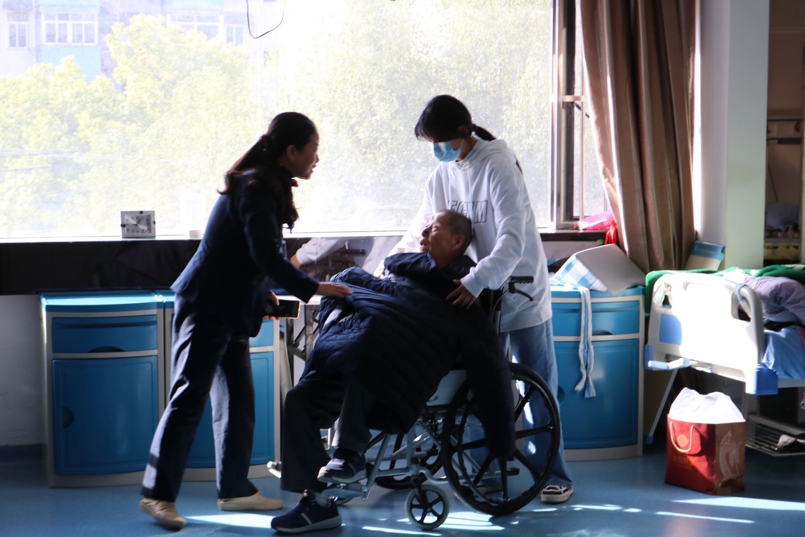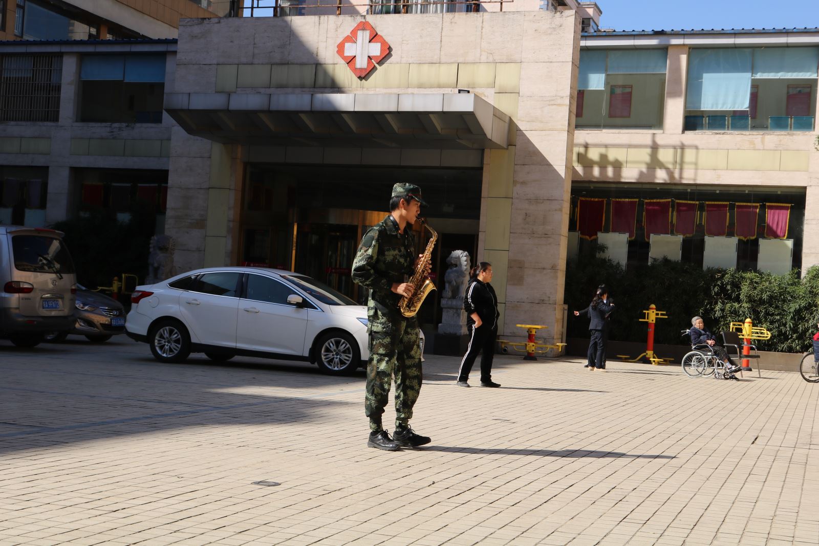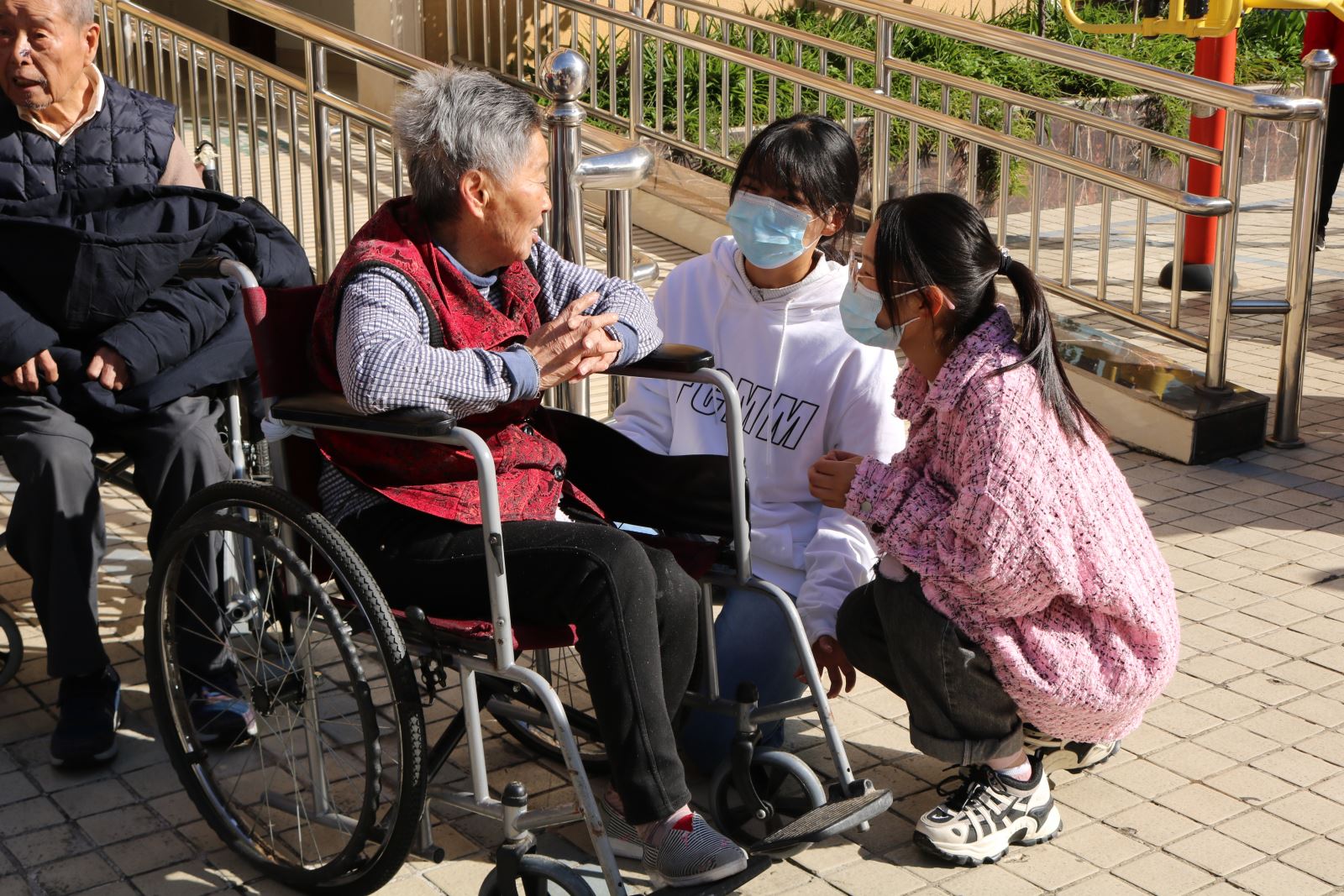 隨后,同學們攙扶老人、推著輪椅將老人們帶到院子里曬太陽,并將自己的外套給他們蓋上。在院子里,同學們主動向老人們表演節目,無論是活潑帥氣的街舞,還是散發著青春活力的吉他,亦或是奏響青春的薩克斯,都給在場的老人們帶來了一陣陣歡聲笑語。聽到老人們發自內心由衷的感謝,同學們心頭暖暖的,一種久違的溫馨和家人的關懷圍繞在老人的心中。