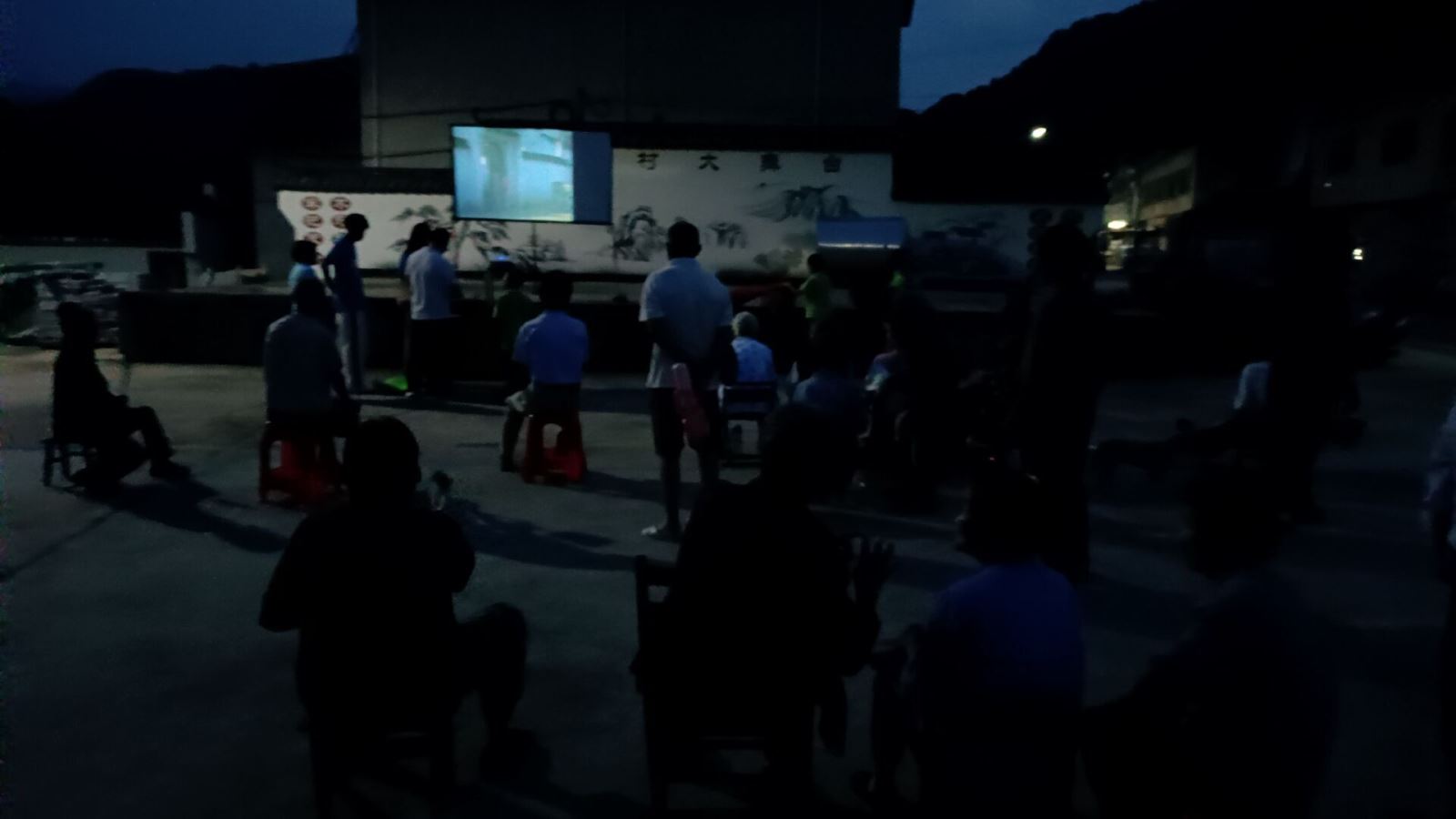 鄉(xiāng)村振興,文化先行,為豐富廣大群眾精神文化生活,弘揚(yáng)愛(ài)國(guó)主義精神,6月21日晚,實(shí)踐團(tuán)隊(duì)赴石臺(tái)縣珂田村為當(dāng)?shù)卮迕癫シ偶t色電影《長(zhǎng)津湖之水門橋》。村民廣場(chǎng)上熙熙攘攘,大家紛紛搬來(lái)小板凳,“小銀幕”點(diǎn)亮了這里的夜生活,村民們?cè)诩议T口就能免費(fèi)看到大片,打通了文化惠民服務(wù)“最后一公里”。現(xiàn)在正是農(nóng)忙的季節(jié),村民白天忙著莊稼上的事情,聽(tīng)說(shuō)晚上要放映紅色電影,正好可以借著這場(chǎng)觀影的活動(dòng),好好放松一下,感受崢嶸歲月。露天觀影的熱鬧氛圍讓村民的生活一下變得豐富起來(lái)。村民與同學(xué)們聚在一起看電影,坐在一起聽(tīng)故事,共同重溫往事,共敘鄉(xiāng)村振興美好愿景。