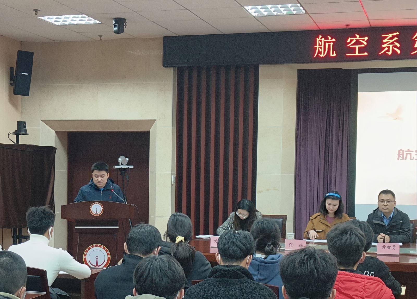 11月22日下午,航空系第一次全體學(xué)生大會(huì)在信息樓九樓會(huì)議室召開。航空系負(fù)責(zé)人孟柯生、黨支部副書記趙婧、機(jī)務(wù)維修教研室主任黃智勇、航空系教師張蔚、侯先偉、繆文彬、王康出席大會(huì),全體學(xué)生參加大會(huì)。會(huì)議由團(tuán)支部負(fù)責(zé)人方玥主持。
