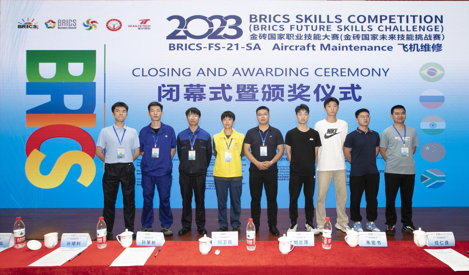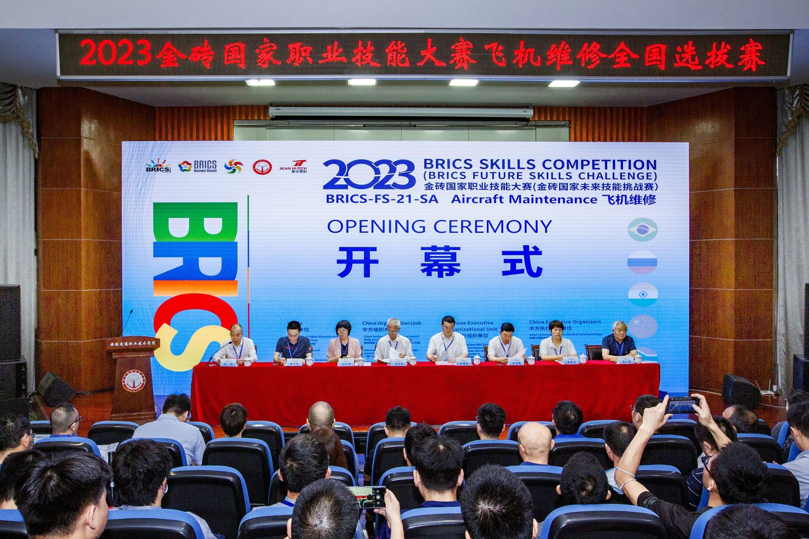 2023年7月7日至7月9日,由南非高等教育與培訓部、金磚國家工商理事會、南非豪登政府主辦,安徽交通職業技術學院承辦的2023金磚國家職業技能大賽飛機維修全國選拔賽暨國內決賽成功落下帷幕。中國交通教育研究會會長劉衛民、安徽省交通運輸廳副廳長孫革新、中國交通教育研究會秘書長劉蘭萍、安徽交通職業技術學院黨委書記孫順利、院長孫曉雷、鄭州捷安高科股份有限公司總經理高志生、金磚國家職業技能大賽中方競賽辦公室一處處長朱宏書、中國民航大學首席專家任仁良出席本次比賽開、閉幕式。